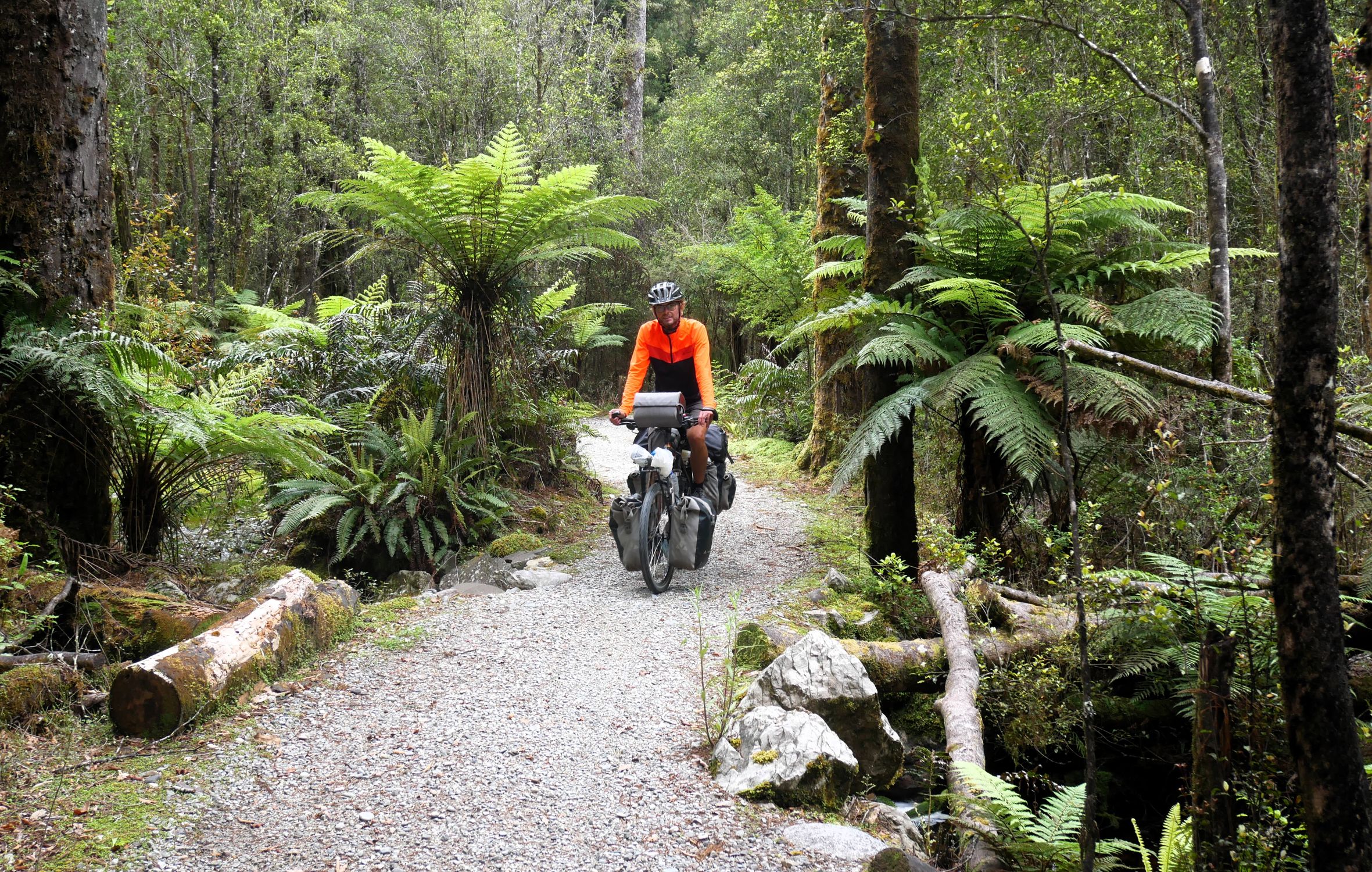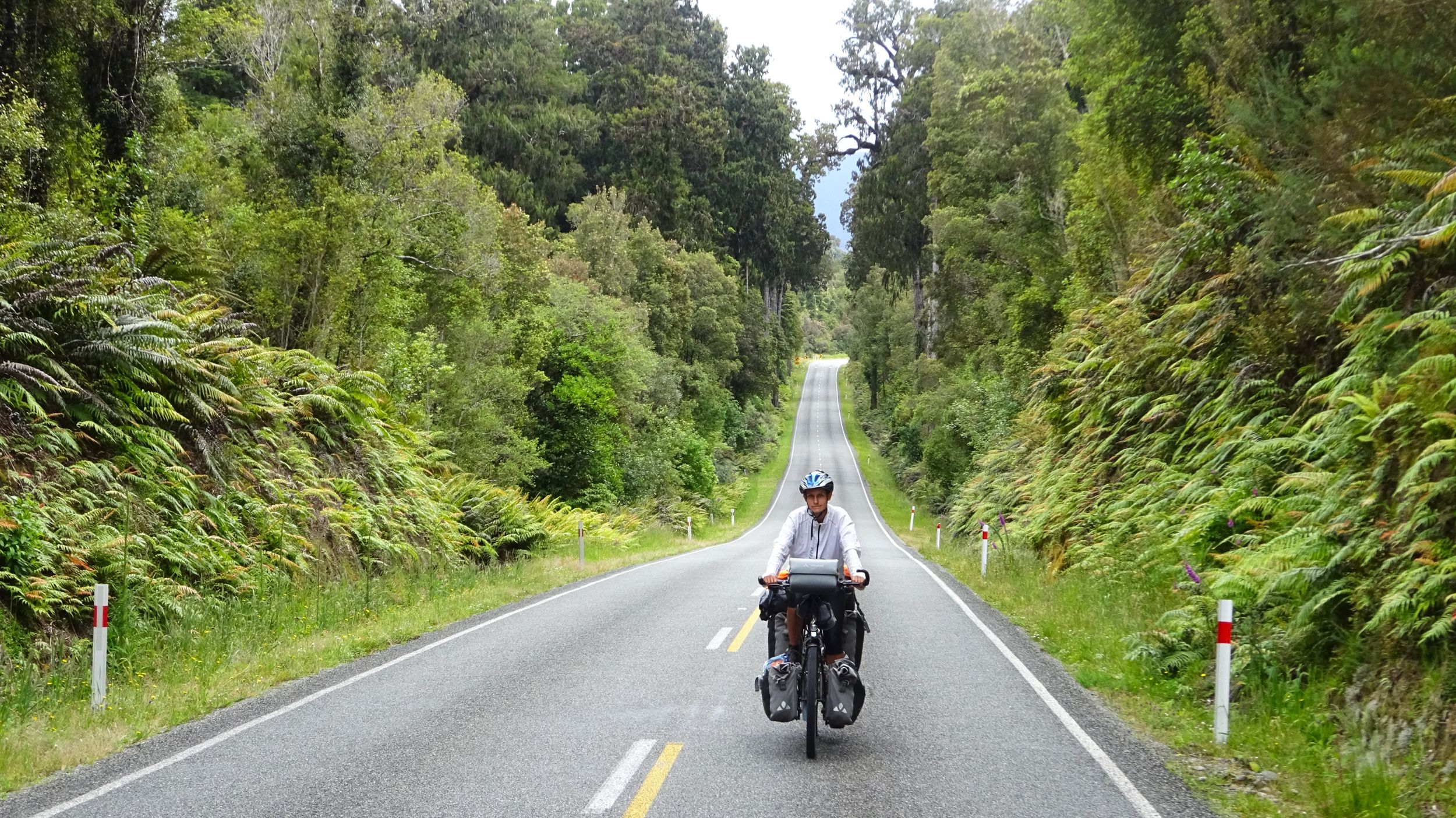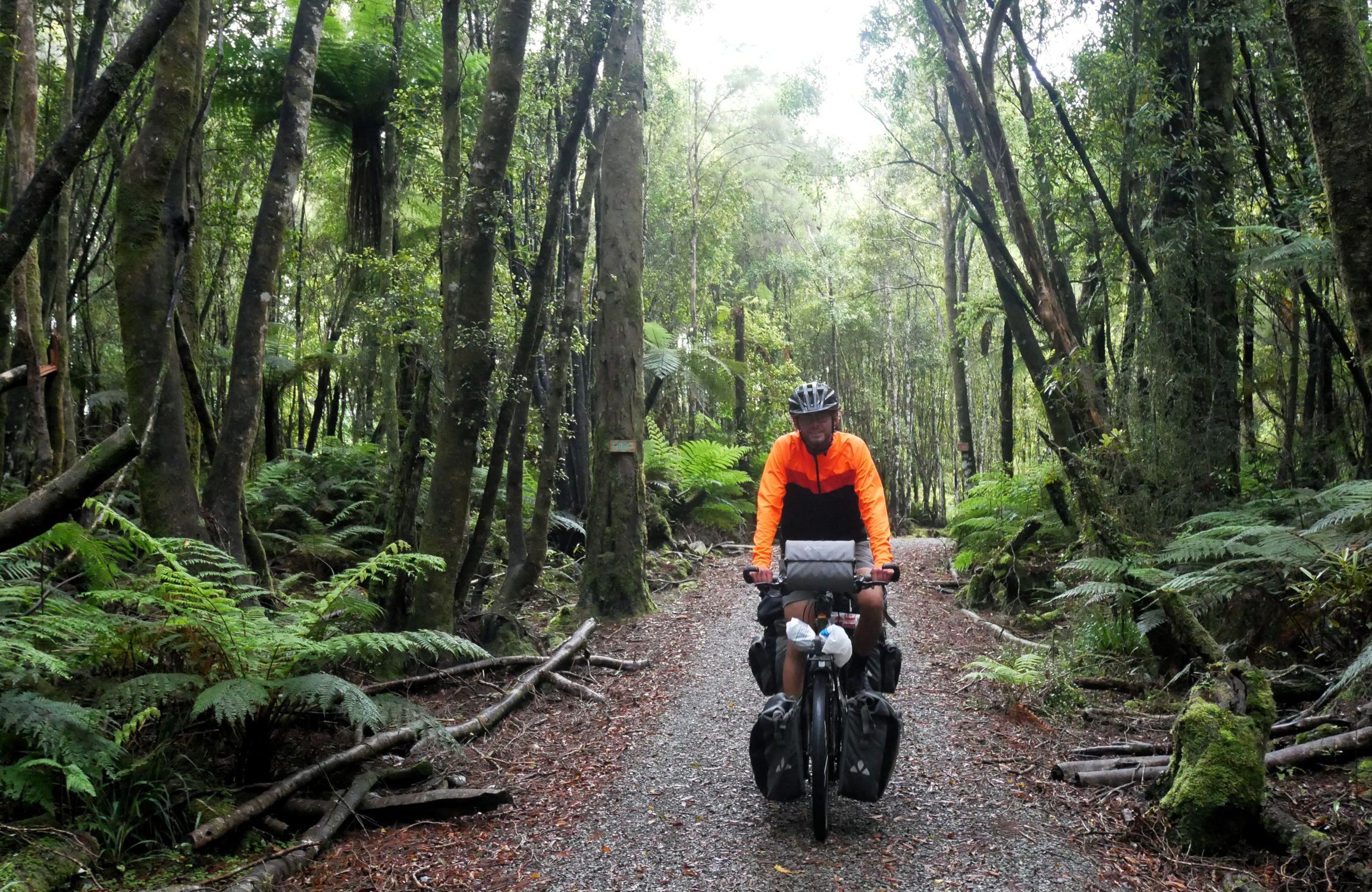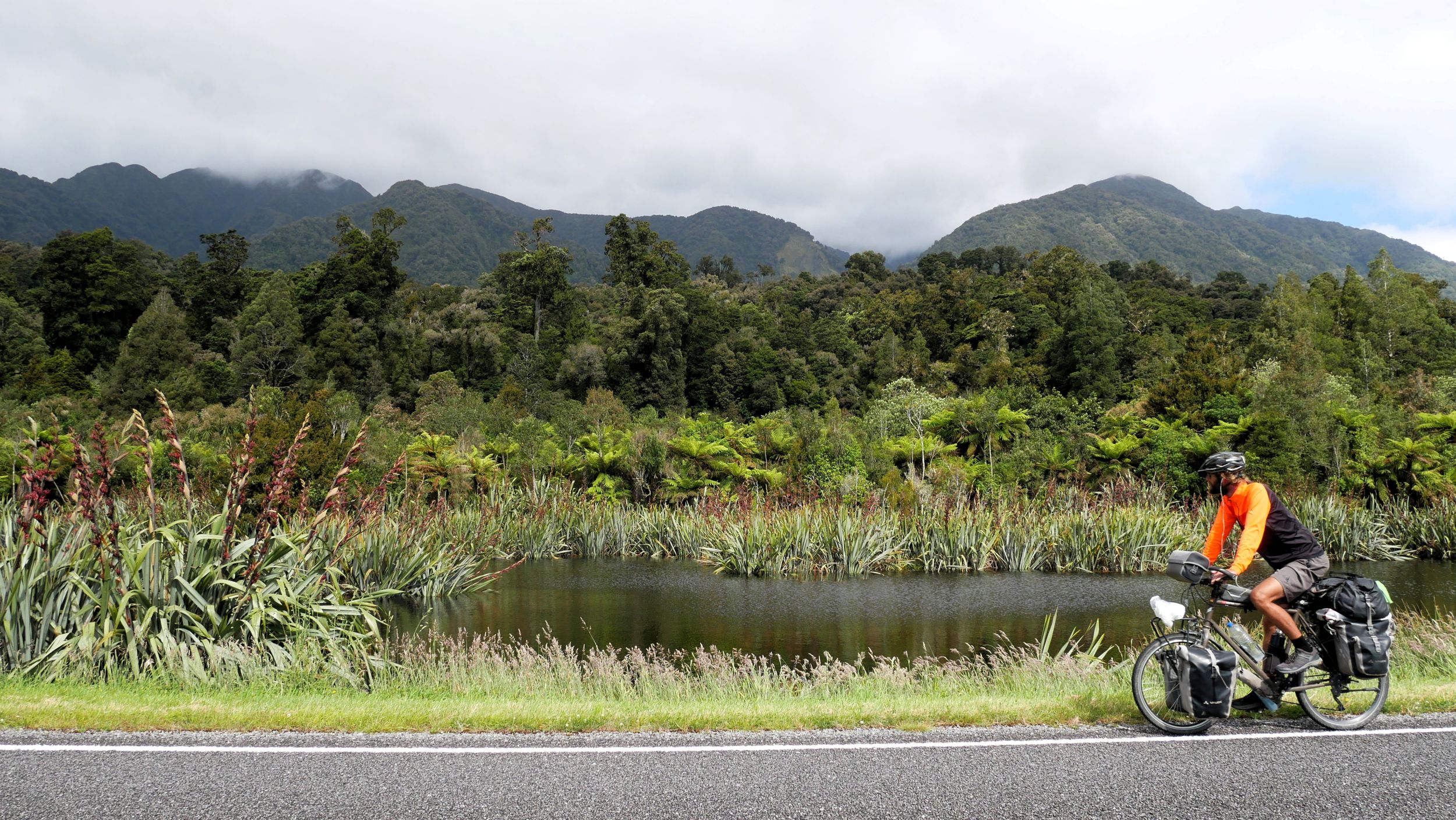 Nach der recht alpin-trockenen Region Otago brechen wir auf zur Westküste der Südinsel – und die Landschaft ändert sich einmal komplett. Hier strotzt alles nur so vor feuchtem, grünem, wucherndem Urwald. Der Wald besteht aus vermoosten Laubbäumen und großen Baumfarnen. Es ist ein gemäßigter Regenwald und entsprechend regnet es übers Jahr auch ungefähr viermal mehr als in Deutschland. Gleichzeitig schieben sich Gletscher von den Neuseeländischen Alpen bis in den Regenwald herunter. Es ist nicht nur die verregnetste, sondern auch die am dünnsten besiedelte Region Neuseelands, durch die wir hier gefahren sind. Wir berichten in dieser Episode davon, wie wir mit dem Regen klargekommen sind, von den frechen Keas und vom Herzstück der Westküste aus Radfahrersicht: Dem West Coast Wilderness Trail!