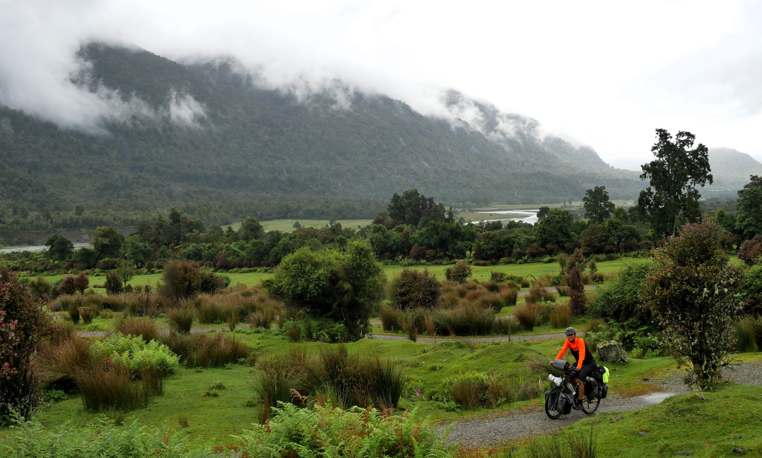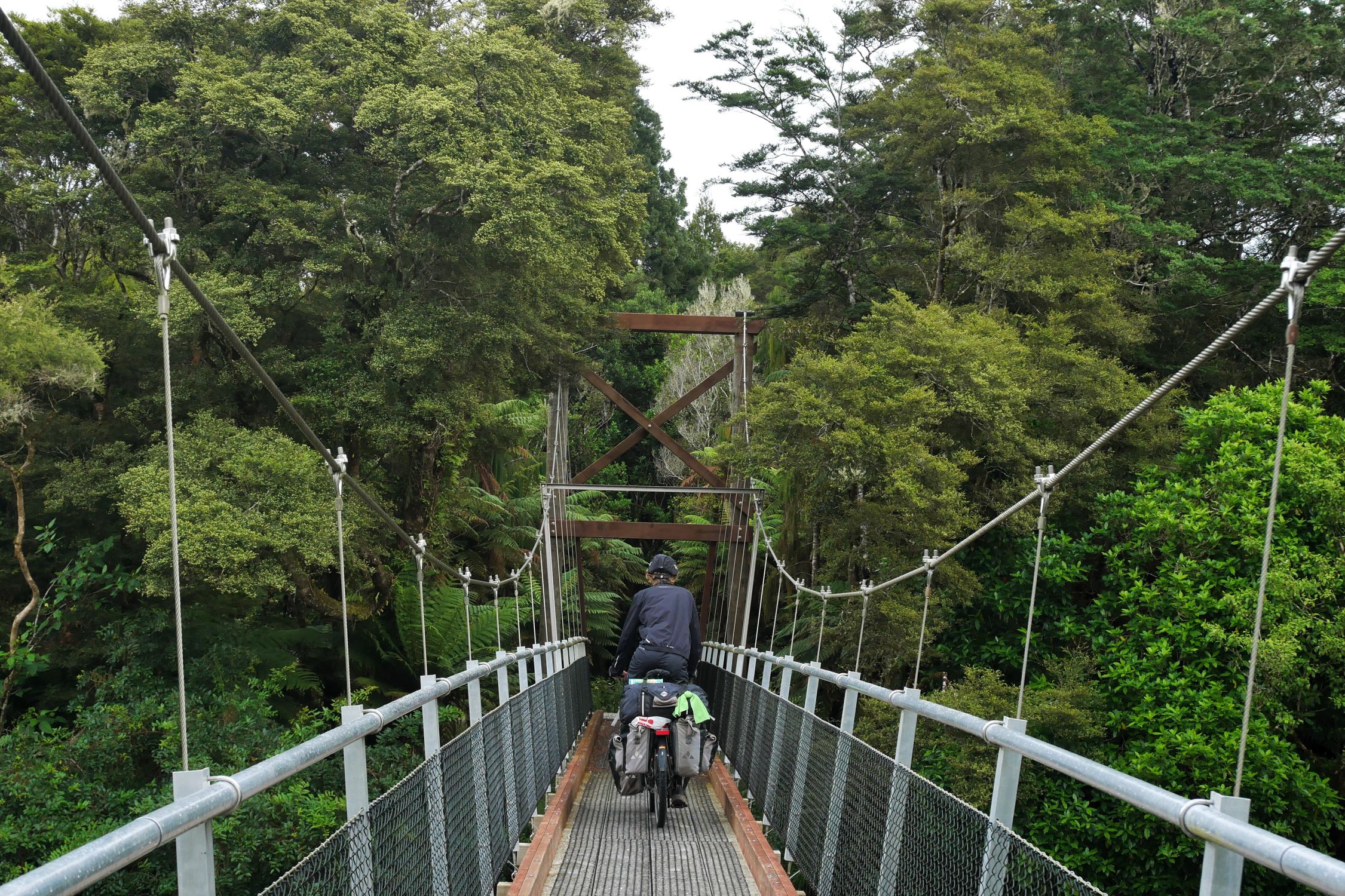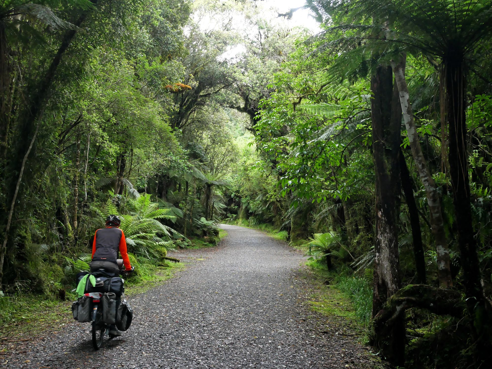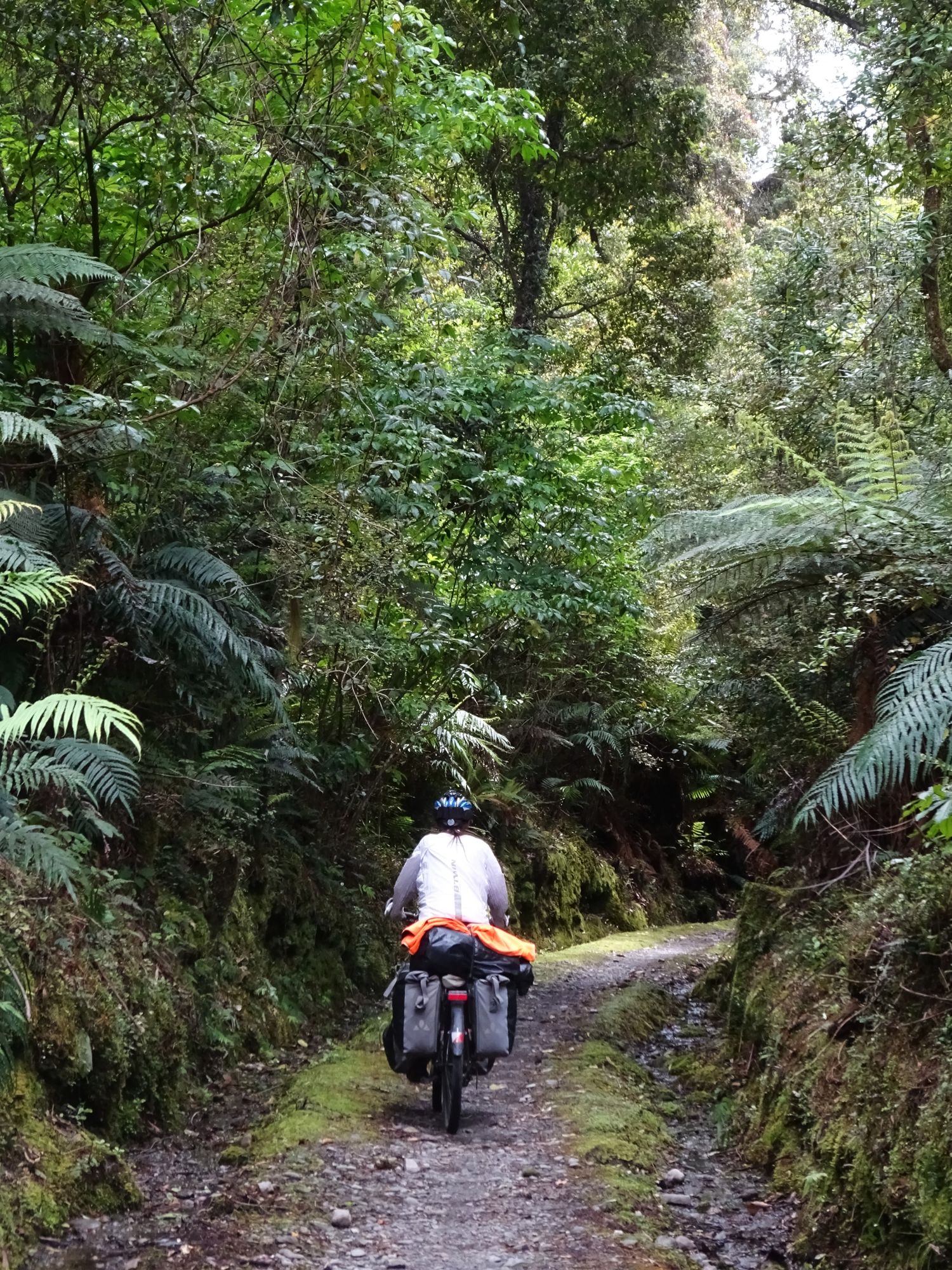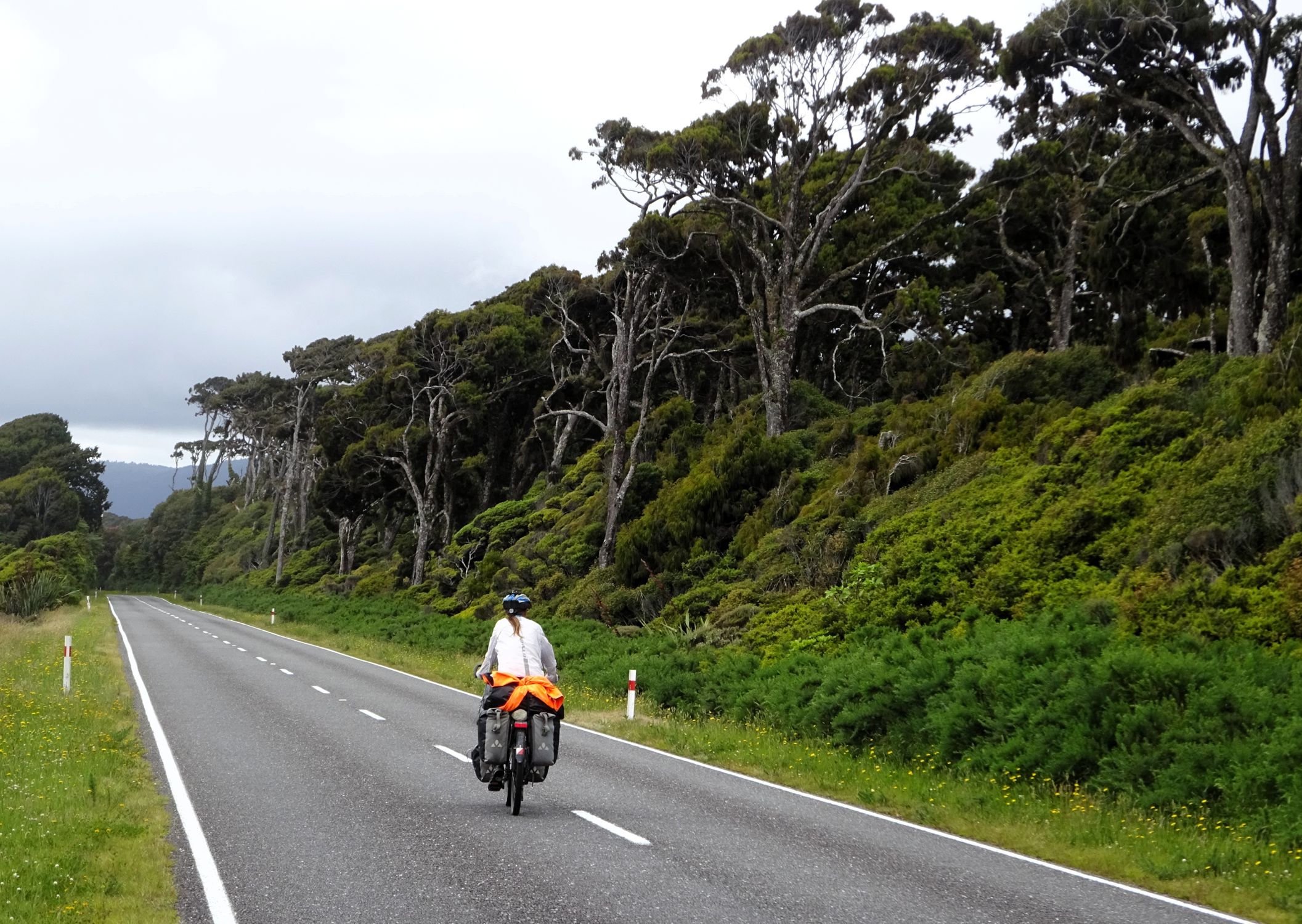 Nach der recht alpin-trockenen Region Otago brechen wir auf zur Westküste der Südinsel – und die Landschaft ändert sich einmal komplett. Hier strotzt alles nur so vor feuchtem, grünem, wucherndem Urwald. Der Wald besteht aus vermoosten Laubbäumen und großen Baumfarnen. Es ist ein gemäßigter Regenwald und entsprechend regnet es übers Jahr auch ungefähr viermal mehr als in Deutschland. Gleichzeitig schieben sich Gletscher von den Neuseeländischen Alpen bis in den Regenwald herunter. Es ist nicht nur die verregnetste, sondern auch die am dünnsten besiedelte Region Neuseelands, durch die wir hier gefahren sind. Wir berichten in dieser Episode davon, wie wir mit dem Regen klargekommen sind, von den frechen Keas und vom Herzstück der Westküste aus Radfahrersicht: Dem West Coast Wilderness Trail!