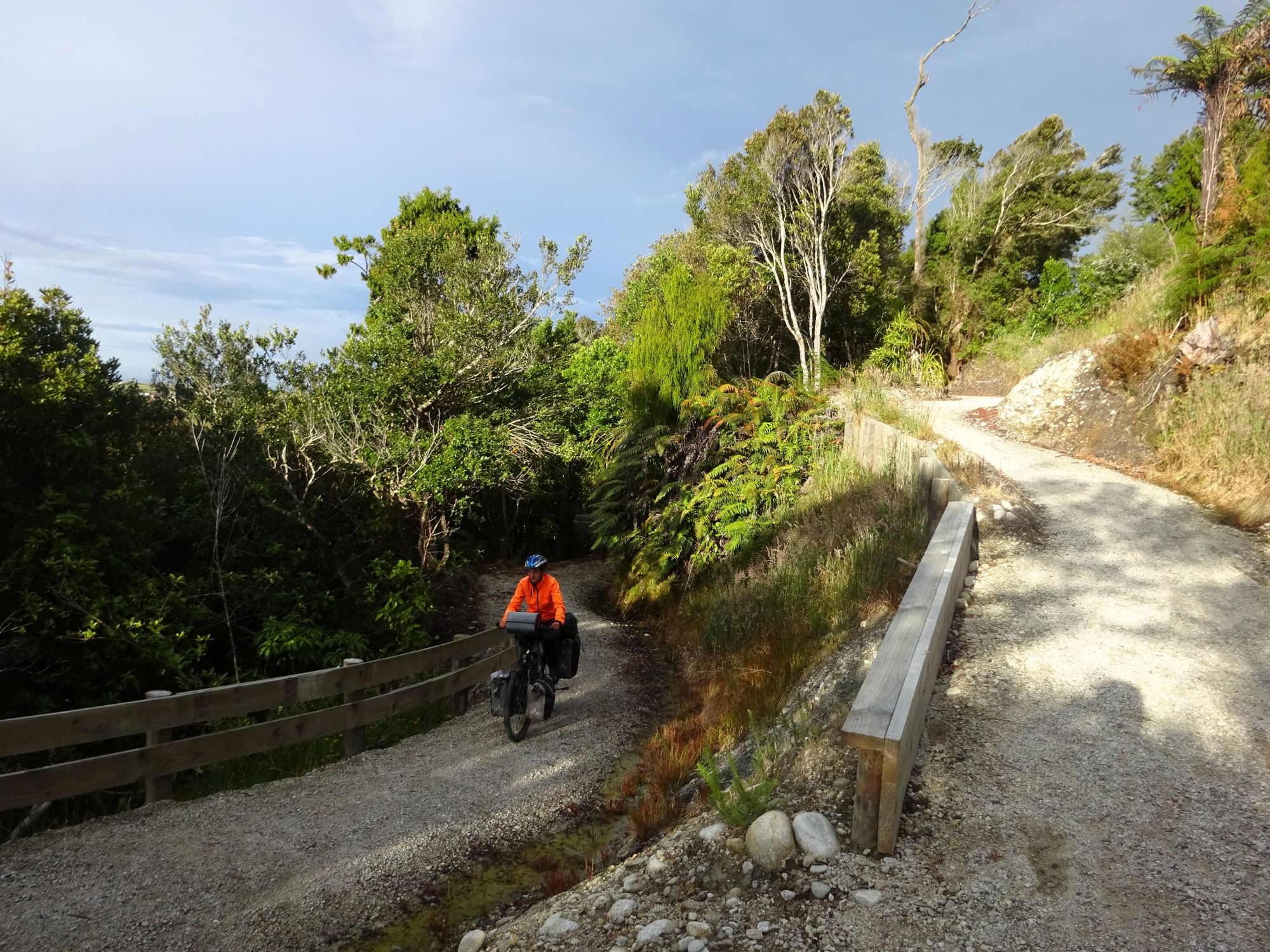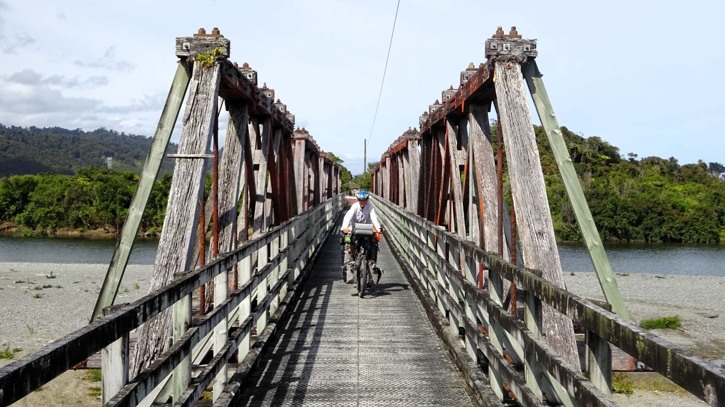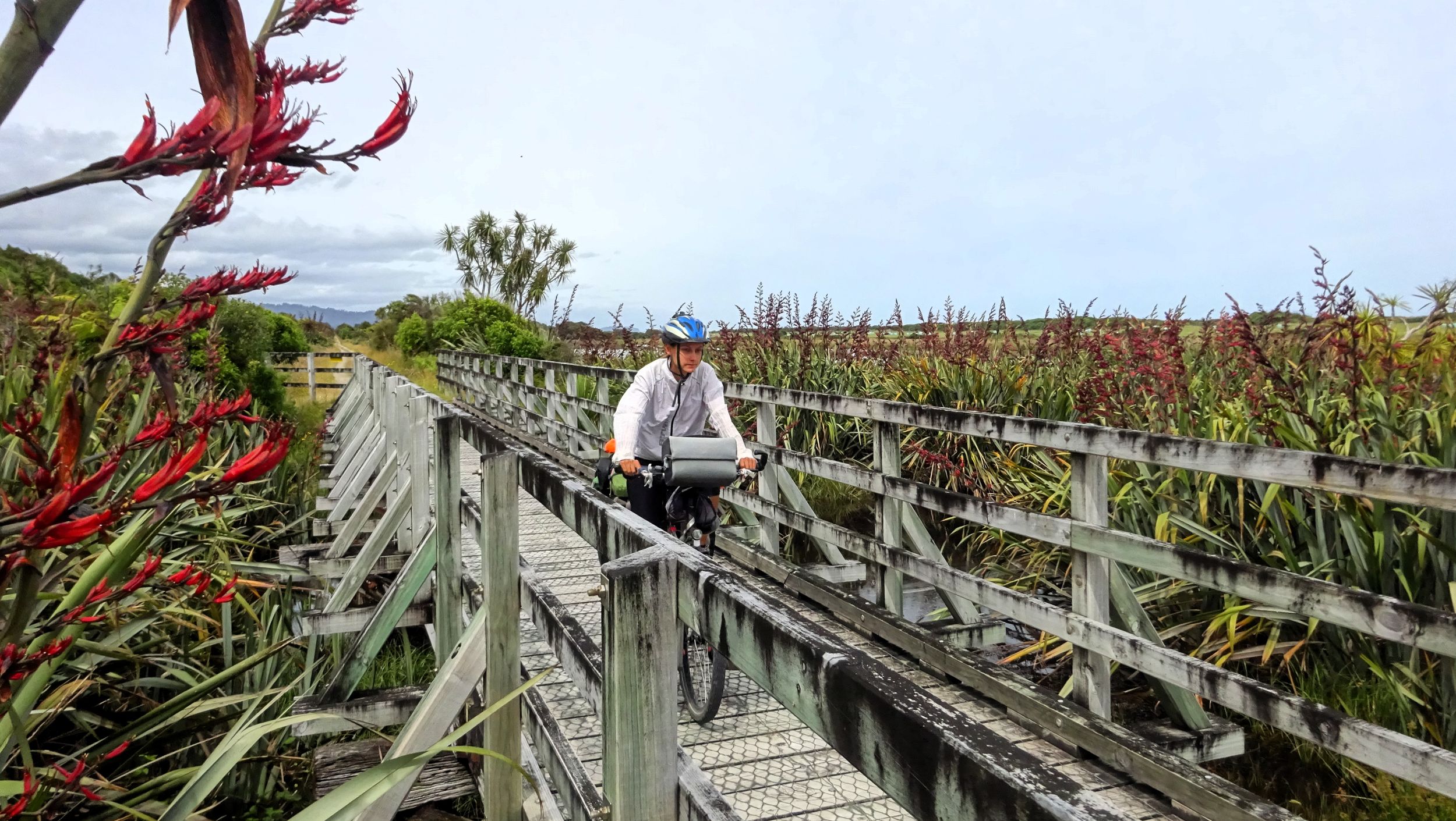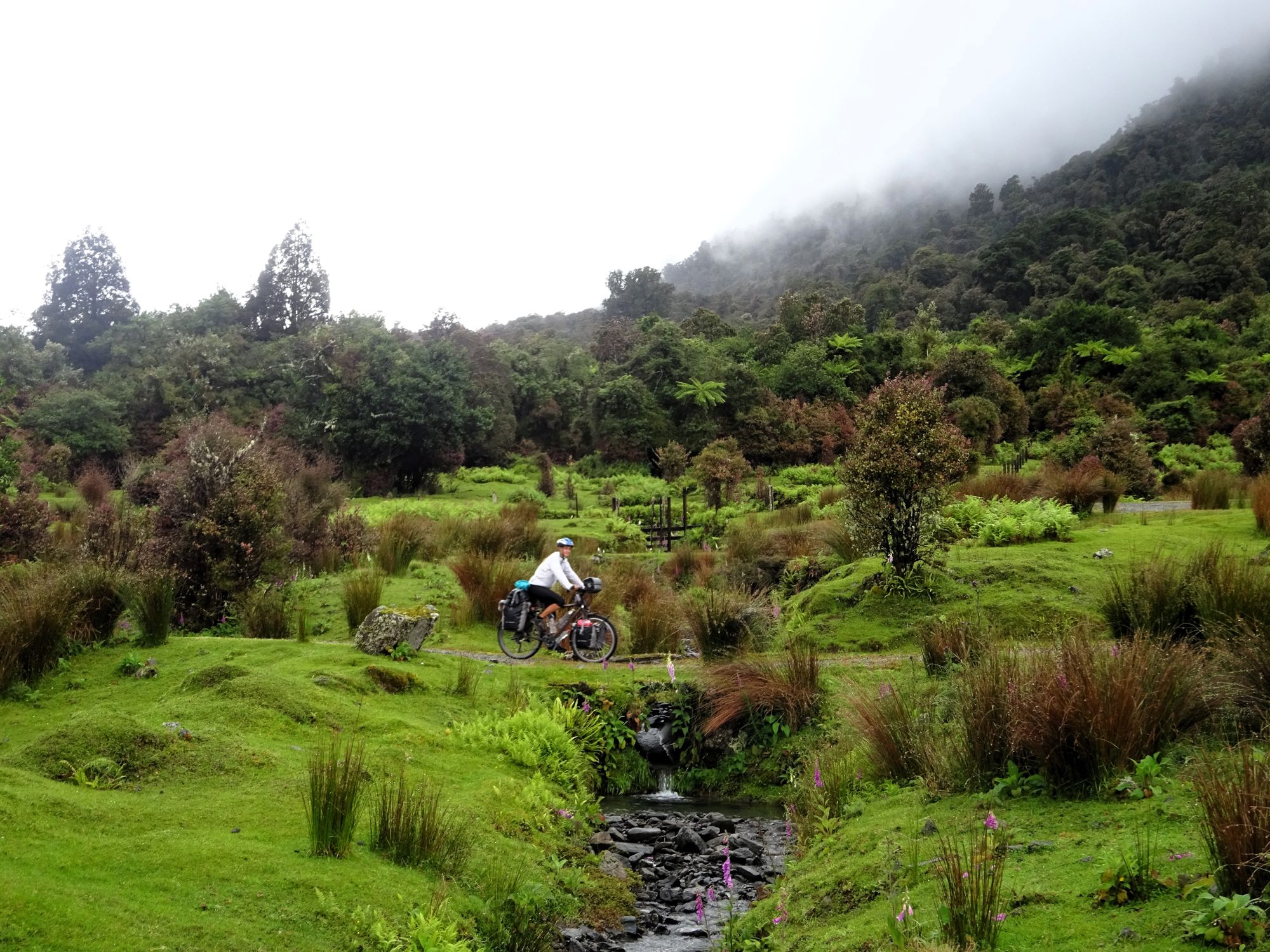 Nach der recht alpin-trockenen Region Otago brechen wir auf zur Westküste der Südinsel – und die Landschaft ändert sich einmal komplett. Hier strotzt alles nur so vor feuchtem, grünem, wucherndem Urwald. Der Wald besteht aus vermoosten Laubbäumen und großen Baumfarnen. Es ist ein gemäßigter Regenwald und entsprechend regnet es übers Jahr auch ungefähr viermal mehr als in Deutschland. Gleichzeitig schieben sich Gletscher von den Neuseeländischen Alpen bis in den Regenwald herunter. Es ist nicht nur die verregnetste, sondern auch die am dünnsten besiedelte Region Neuseelands, durch die wir hier gefahren sind. Wir berichten in dieser Episode davon, wie wir mit dem Regen klargekommen sind, von den frechen Keas und vom Herzstück der Westküste aus Radfahrersicht: Dem West Coast Wilderness Trail!