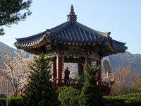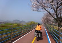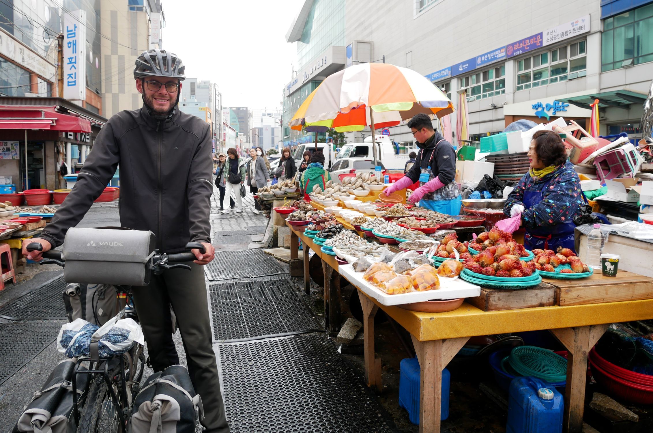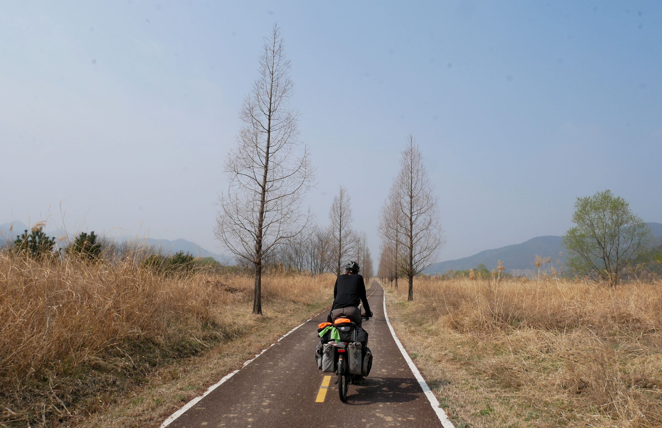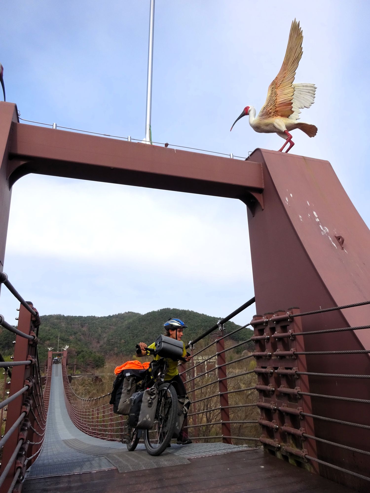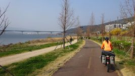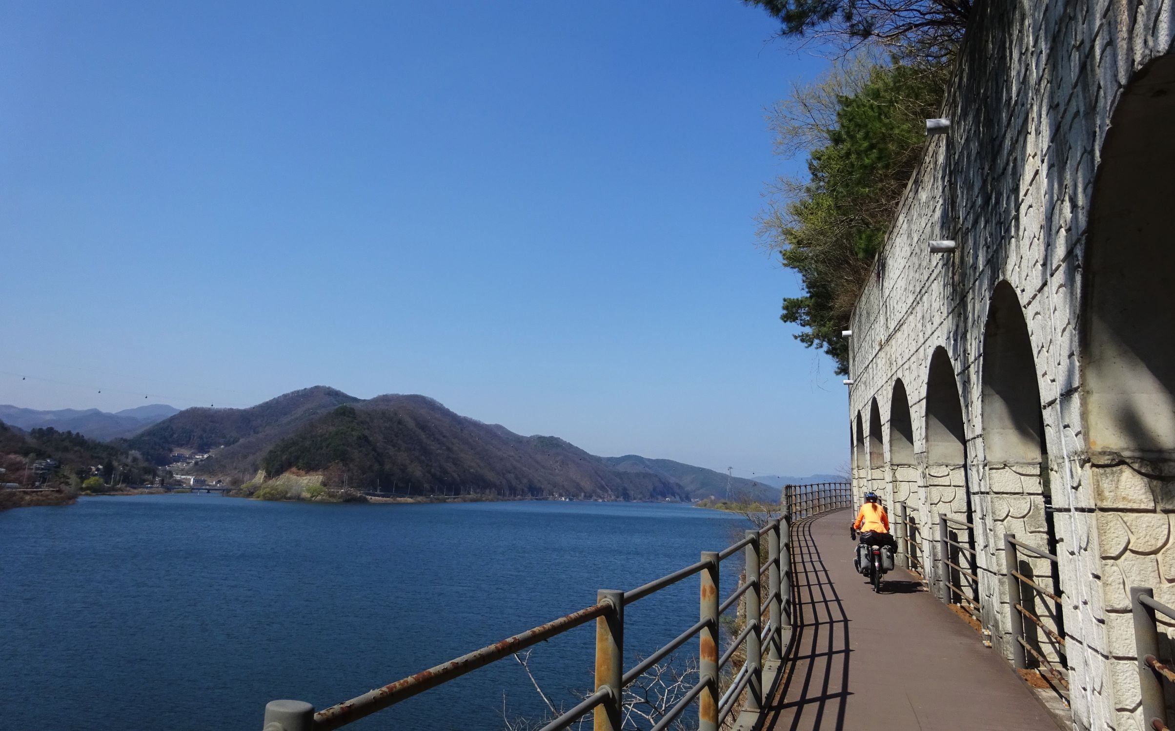 Mit der Fähre setzen wir von Japan in die Hafenstadt Busan im Südosten Südkoreas über. Damit kehren wir nach 9 Monaten wieder zurück aufs Asiatische Festland und fahren gleichzeitig nach über einem Jahr im Linksverkehr wieder auf der rechten Straßenseite. Wenn wir denn überhaupt mal auf Straßen fahren – denn Südkorea ist unter Radfahrern berühmt für sein gut ausgebautes Netz an Flussradwegen, das für ein asiatisches Land absolut einzigartig ist. Sogar weltweit einzigartig ist das Stempelsystem, in dem man spielerisch motiviert wird, auch wirklich möglichst viele der Radwege, die das Land zu bieten hat, abzufahren. Das macht Südkorea zum perfekten Transitland, denn auf den Flussradwegen lässt sich das Land ausgesprochen effizient und komfortabel durchqueren, wobei wir aber gleichzeitig am Wegesrand wenig Interessantes entdecken, was Südkorea als eigentliches Reiseziel lohnenswert machen würde. Und sobald wir das Radwegenetz mal verlassen, haben wir mit ziemlich unangenehmen Tunneln zu kämpfen, wodurch schließlich auch die Polizei auf uns aufmerksam wird. Und so sind die südkoreanischen Höhepunkte für uns zum einen die hübschen Pavillons, die absolut perfekte Zeltplätze sind, und zum anderen das ausgesprochen nette Zusammentreffen mit den Radreise-Kollegen Dai sowie Kyra & Michael.