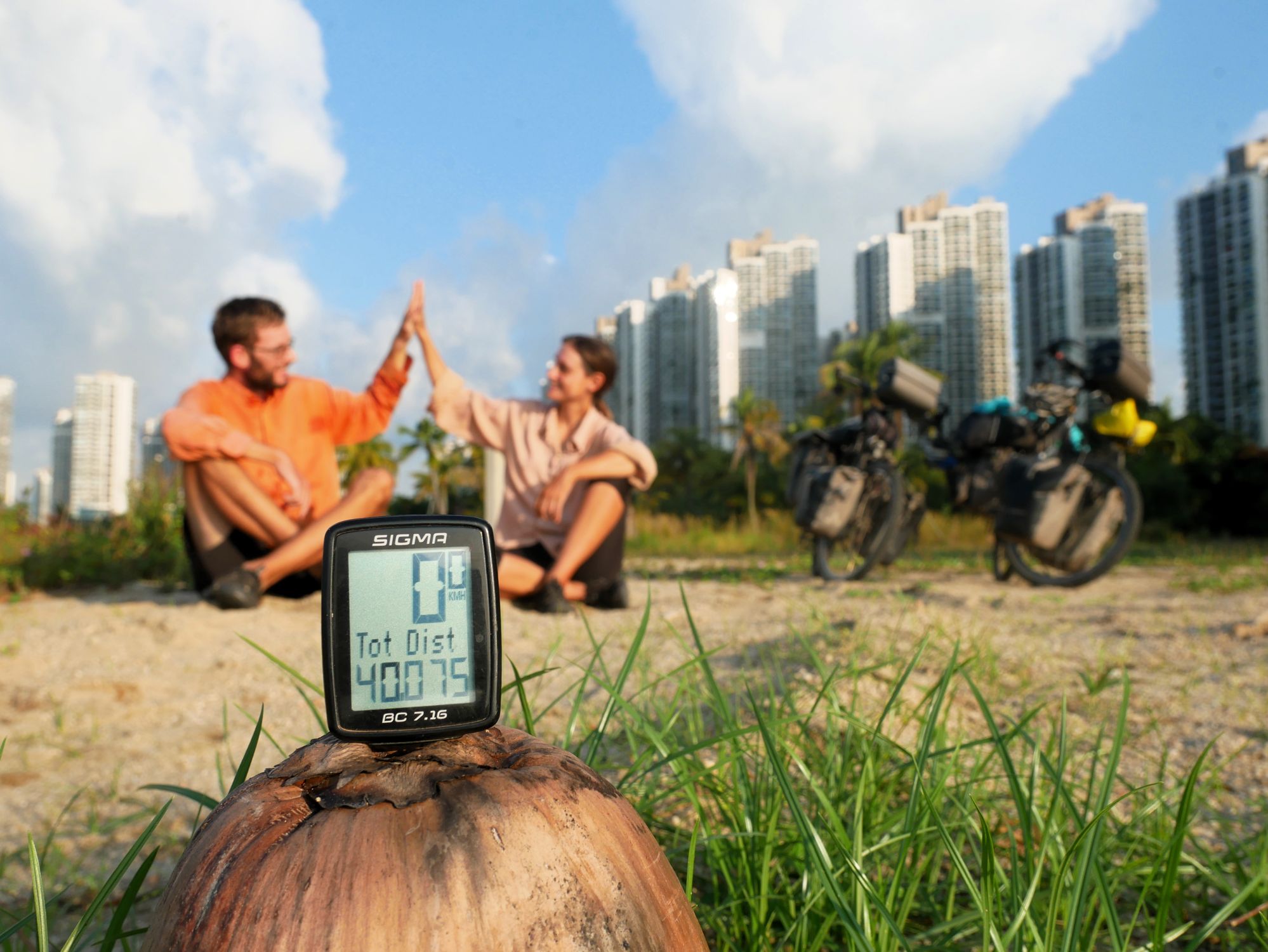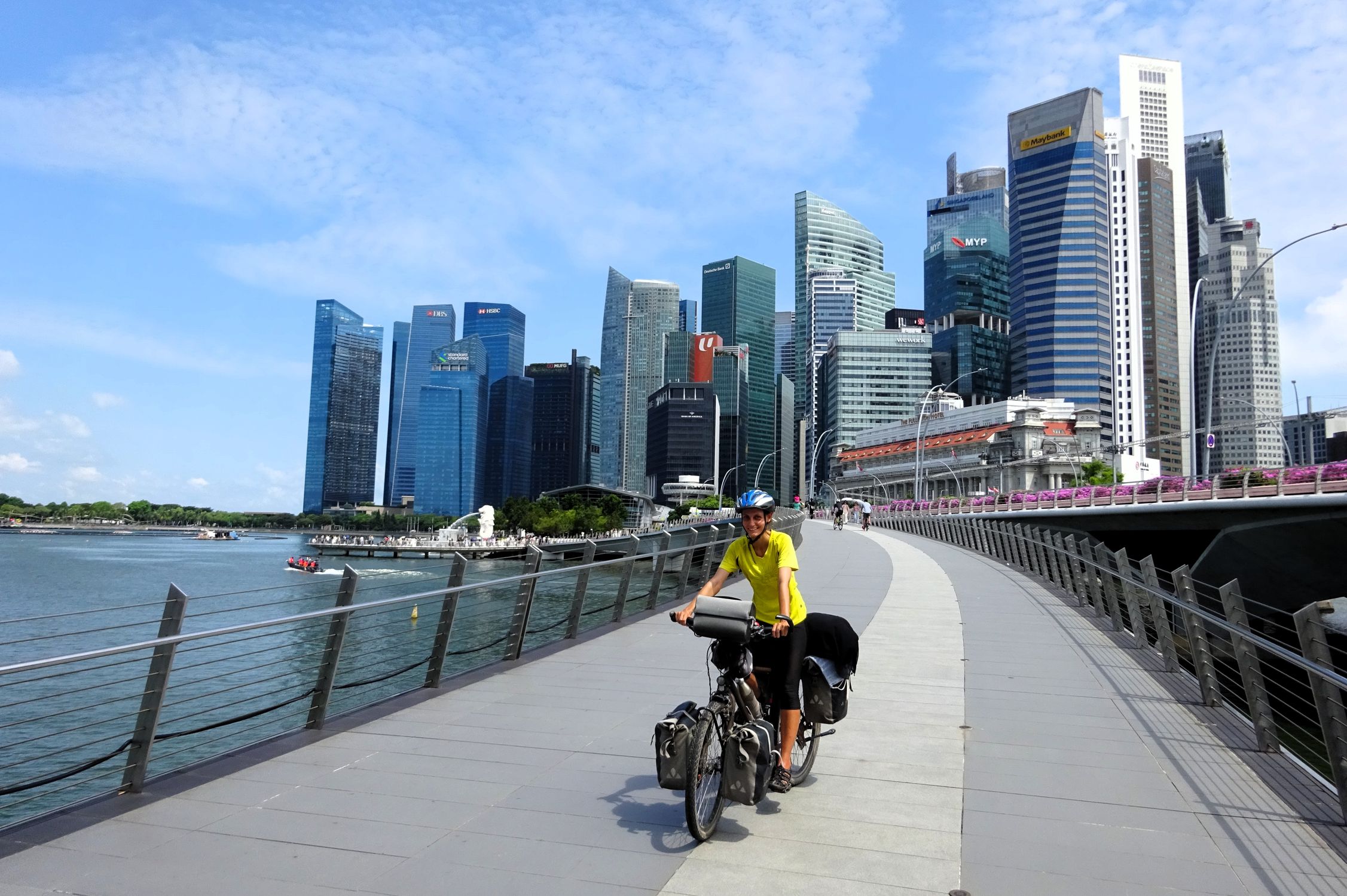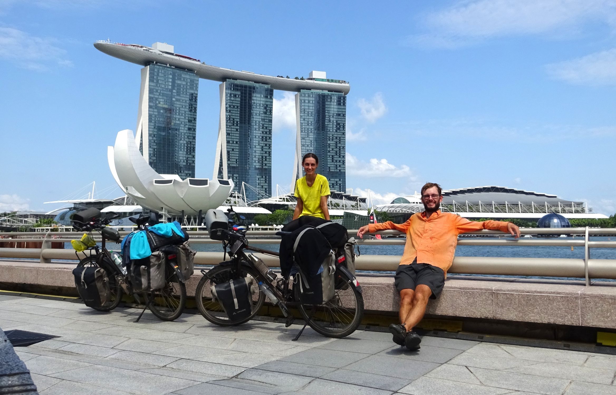 Singapore is actually only a small city state, but we still cycled almost 150 km through this small country. The cycle paths didn’t quite meet our expectations, but those were also extremely high and in the end it was a real pleasure to cycle through this city. We meet Belinda’s brother Gregory again and explore the colorful glittering world of the modern tropical metropolis with him. Of course, our Warmshowers host Yixiong and our evening of tarte flambée together also contribute to our fond memories of the city. In the second part of this episode, we talk in detail about the three milestones that we reach almost simultaneously in Singapore and also discuss the question of whether we can really claim in good conscience to have cycled the entire distance from Karlsruhe to Singapore.