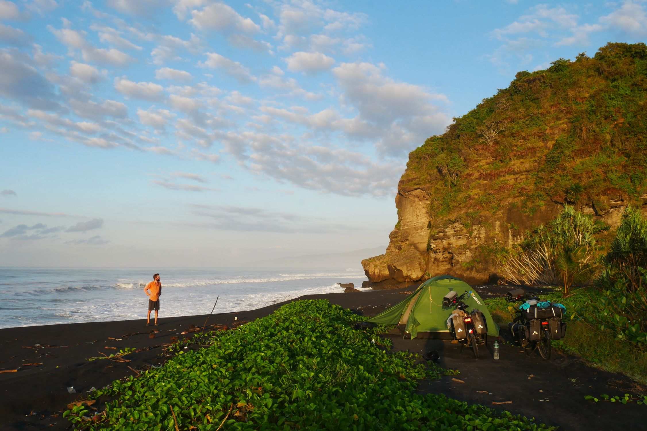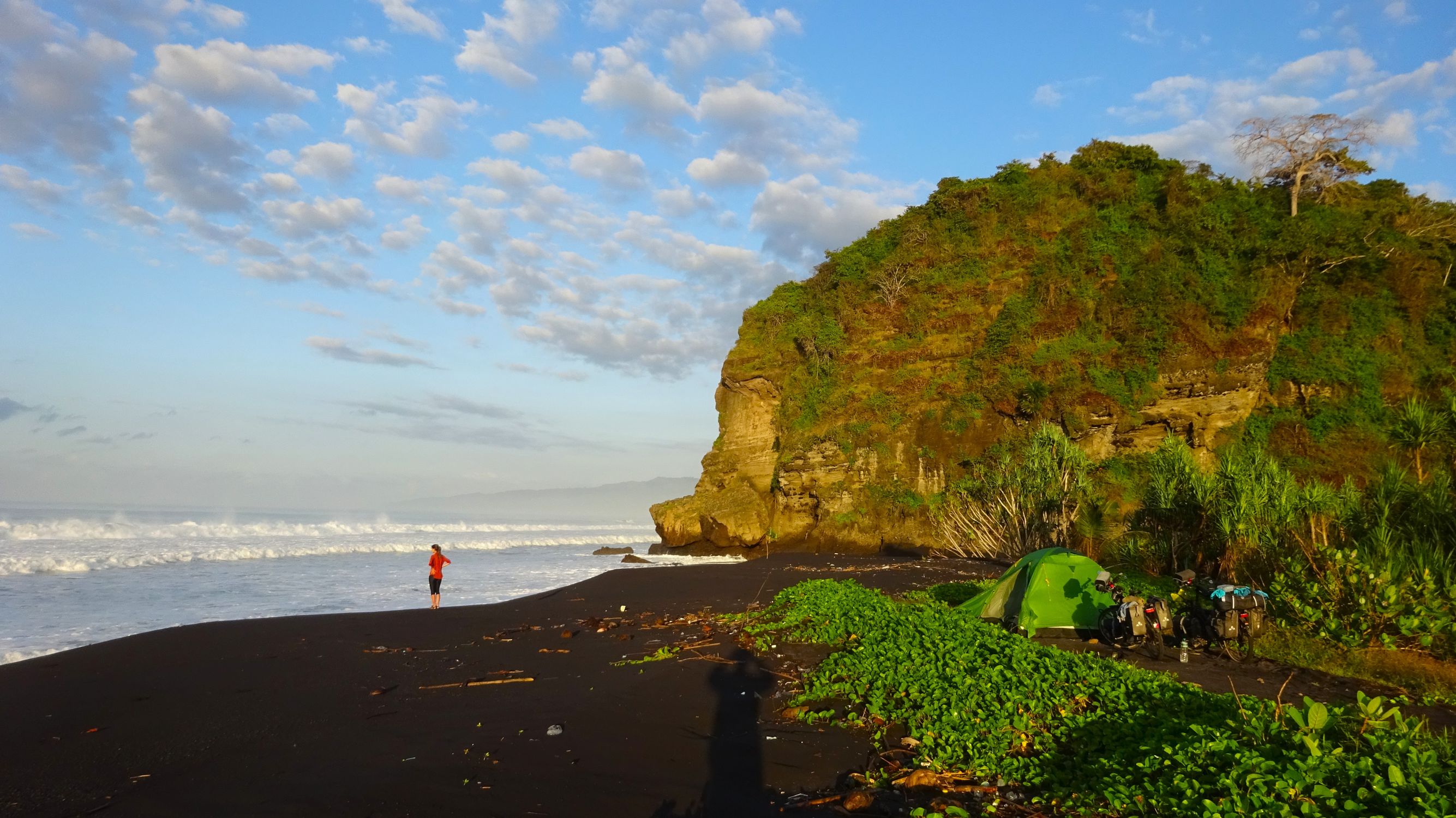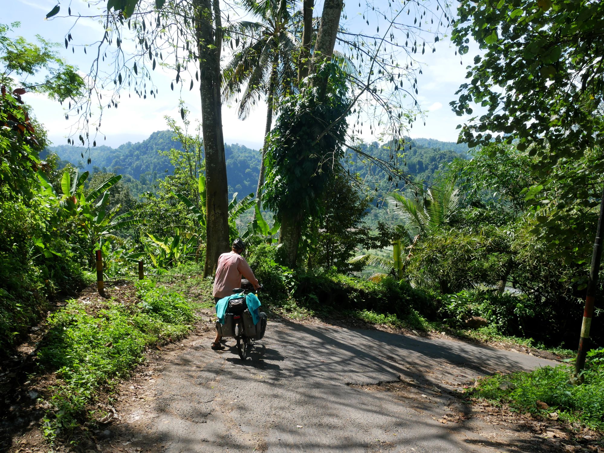 After our temporary separation in West Java, which we reported on in the last episode, we finally continue eastward together from Yogyakarta. Through villages and rice fields and finally back to the south coast of Java, where it is particularly beautiful, but at the same time our frustration tolerance is put to the test. At this point, let’s just say this much: steep roads, bad roads, no roads. After 19 days on Java, we finally cross over to the next island: Bali. We follow the north coast for a while before turning inland and climbing the caldera of the Batur volcano. The descent is a particular joy, not only because we can make good progress, but also because of the impressive presence of Hinduism here on this island.