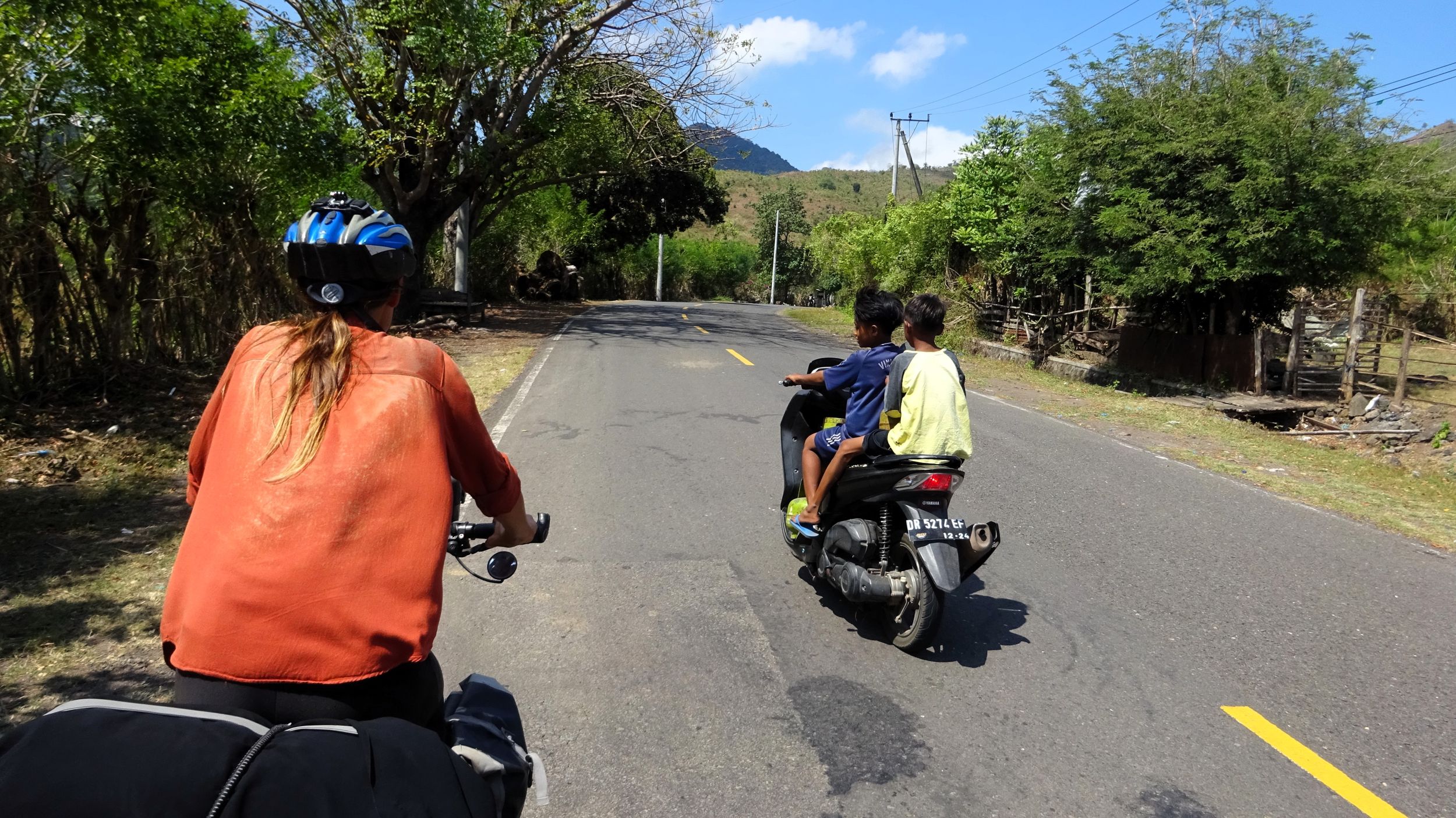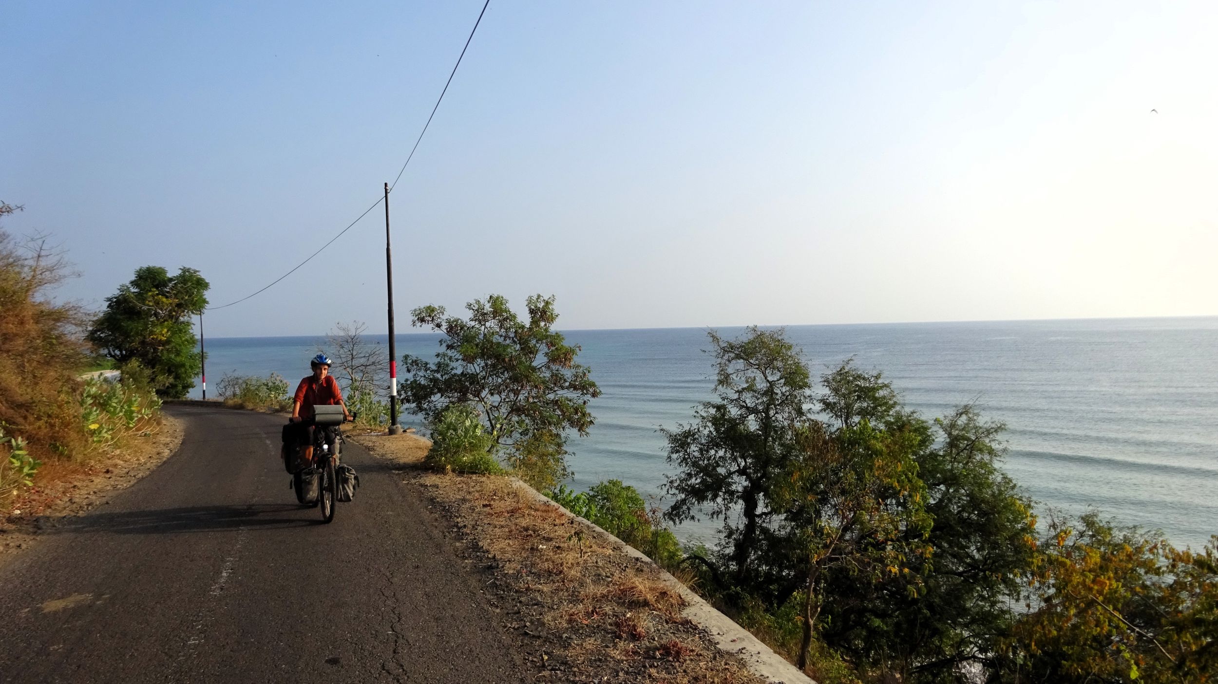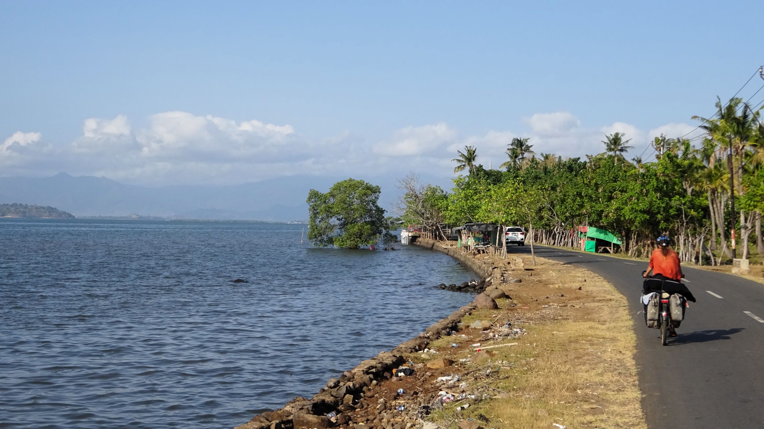 The next islands after Java and Bali are Lombok (2 days, 170 km) and Sumbawa (7 days, 500 km). As we cross Lombok from west to east, we notice an astonishing change in the landscape: the tropical, humid green gives way to an almost Mediterranean, dry brown. This is a welcome change, as it makes camping a little less complicated. In addition, the quality of the roads improves and the traffic density decreases, which does, however, not spare our ears: on some sections, over 80% of vehicles honk their nerve-wracking horns into our ears, denying us the pleasant cycling experience that seems within reach. In this episode, we also discuss whether all people everywhere are really as great as many travel influencers would have us believe, and whether hospitality is actually an Islam-thing.