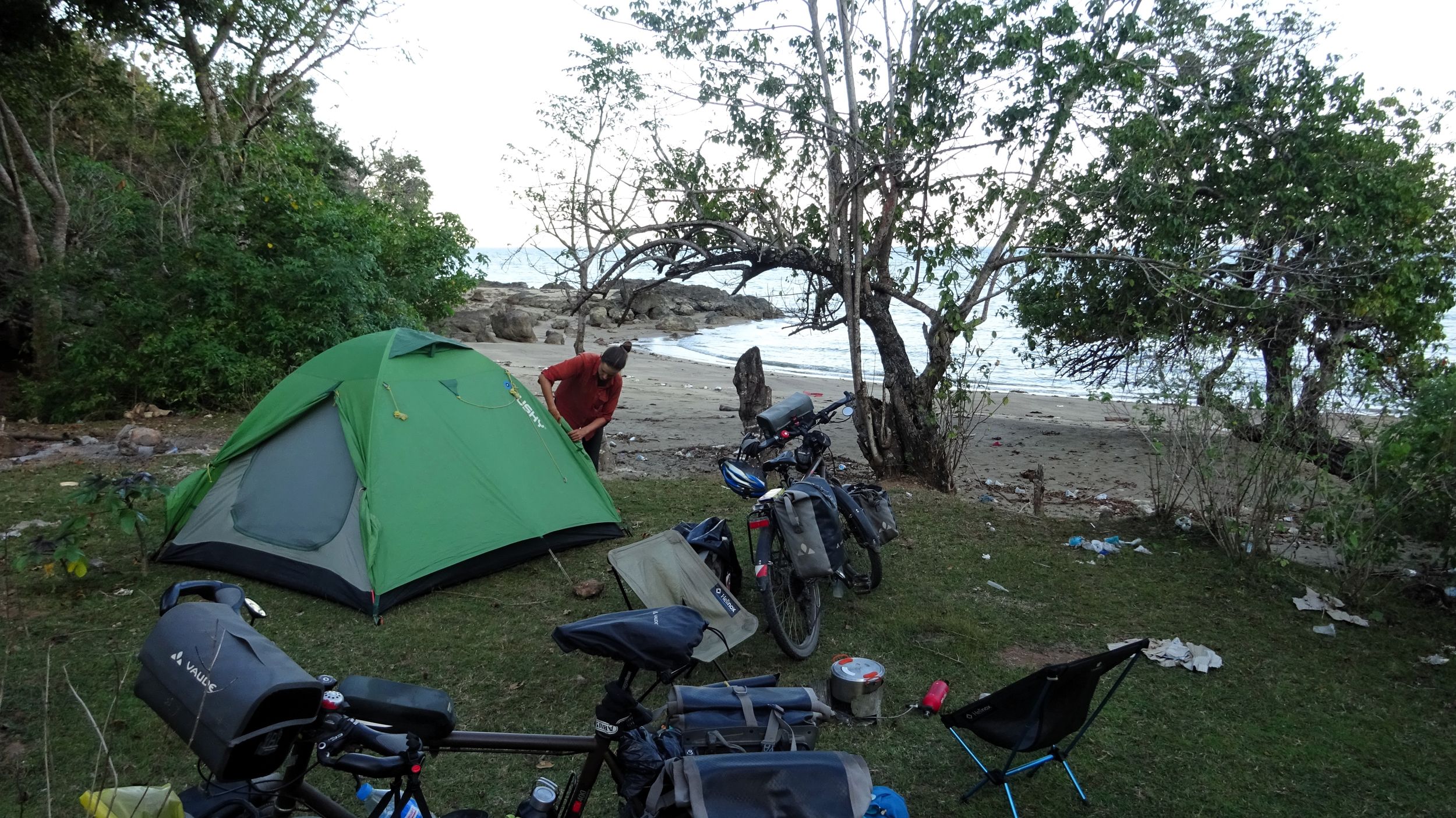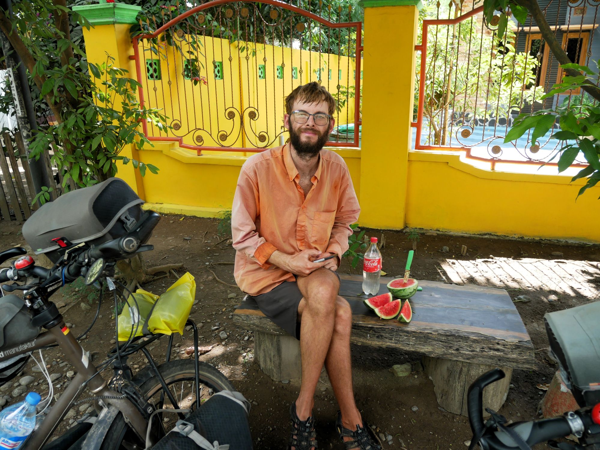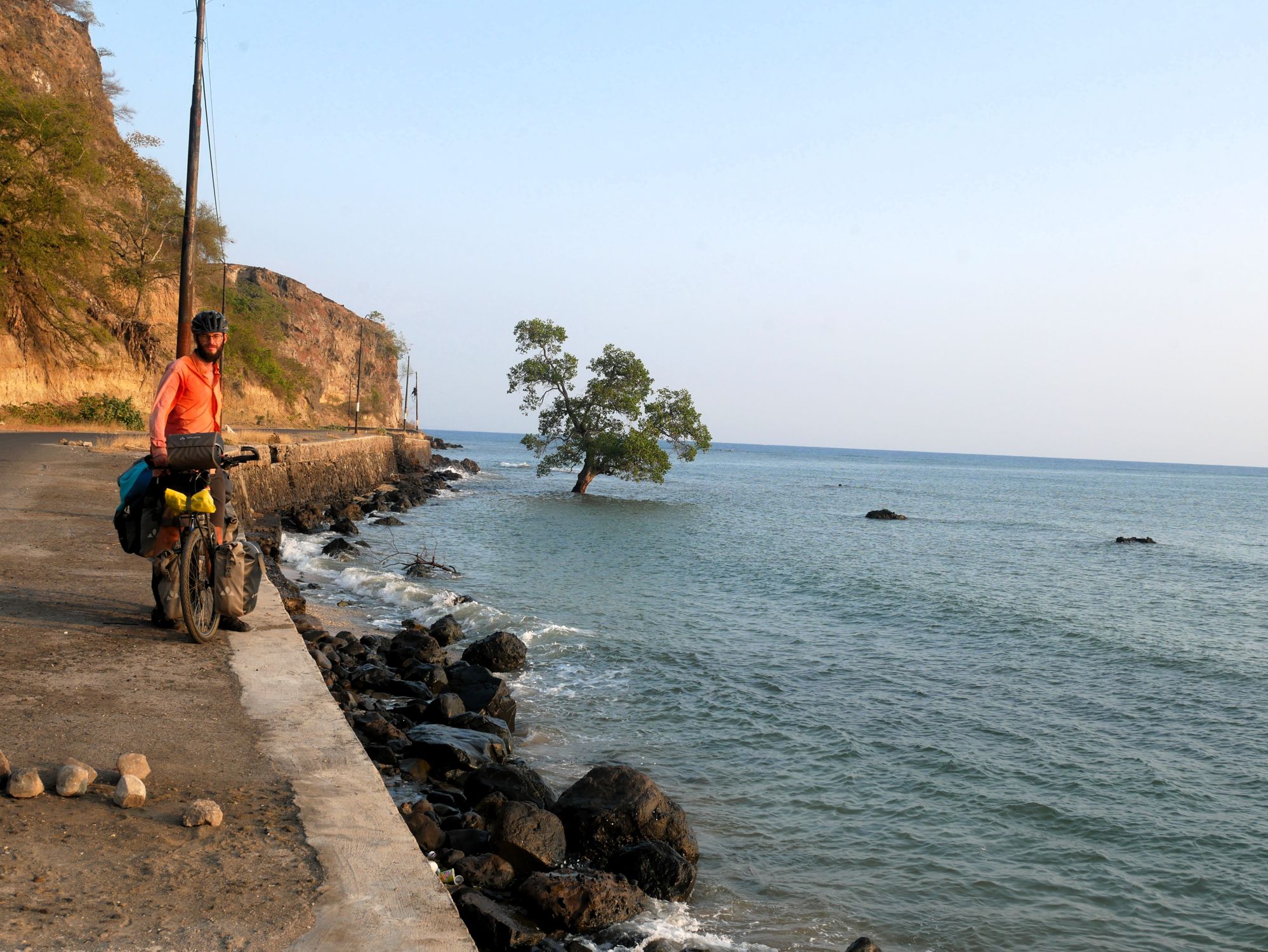 The next islands after Java and Bali are Lombok (2 days, 170 km) and Sumbawa (7 days, 500 km). As we cross Lombok from west to east, we notice an astonishing change in the landscape: the tropical, humid green gives way to an almost Mediterranean, dry brown. This is a welcome change, as it makes camping a little less complicated. In addition, the quality of the roads improves and the traffic density decreases, which does, however, not spare our ears: on some sections, over 80% of vehicles honk their nerve-wracking horns into our ears, denying us the pleasant cycling experience that seems within reach. In this episode, we also discuss whether all people everywhere are really as great as many travel influencers would have us believe, and whether hospitality is actually an Islam-thing.