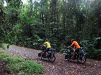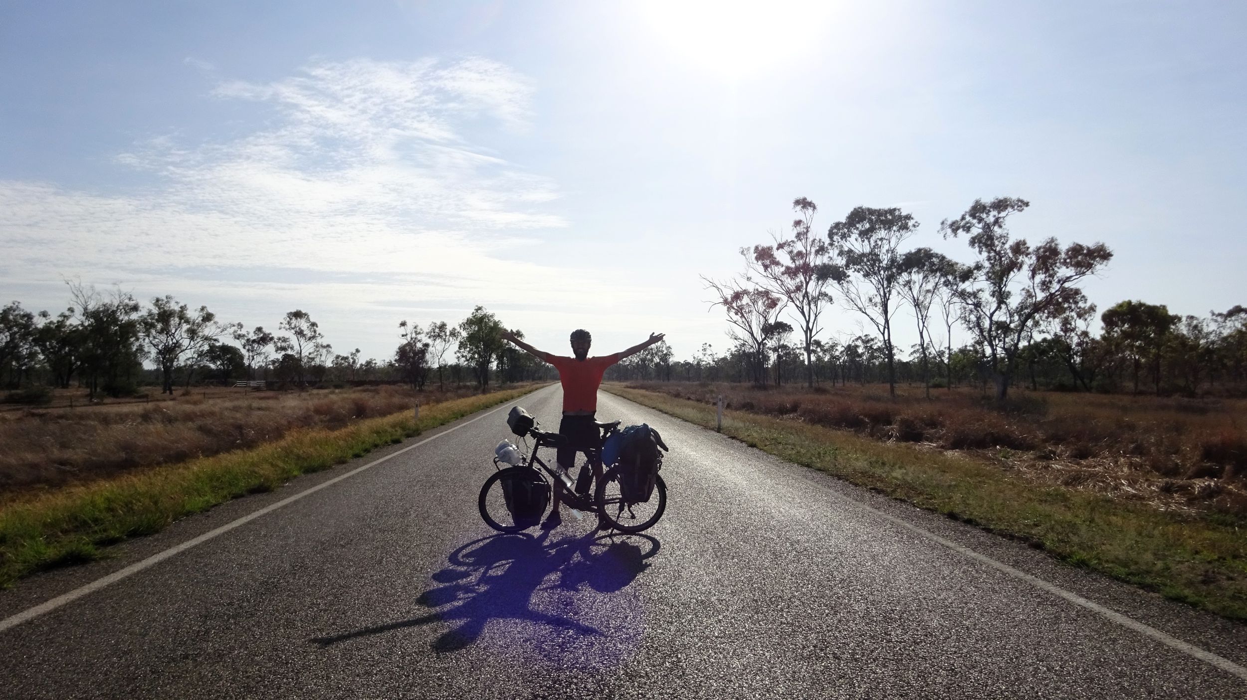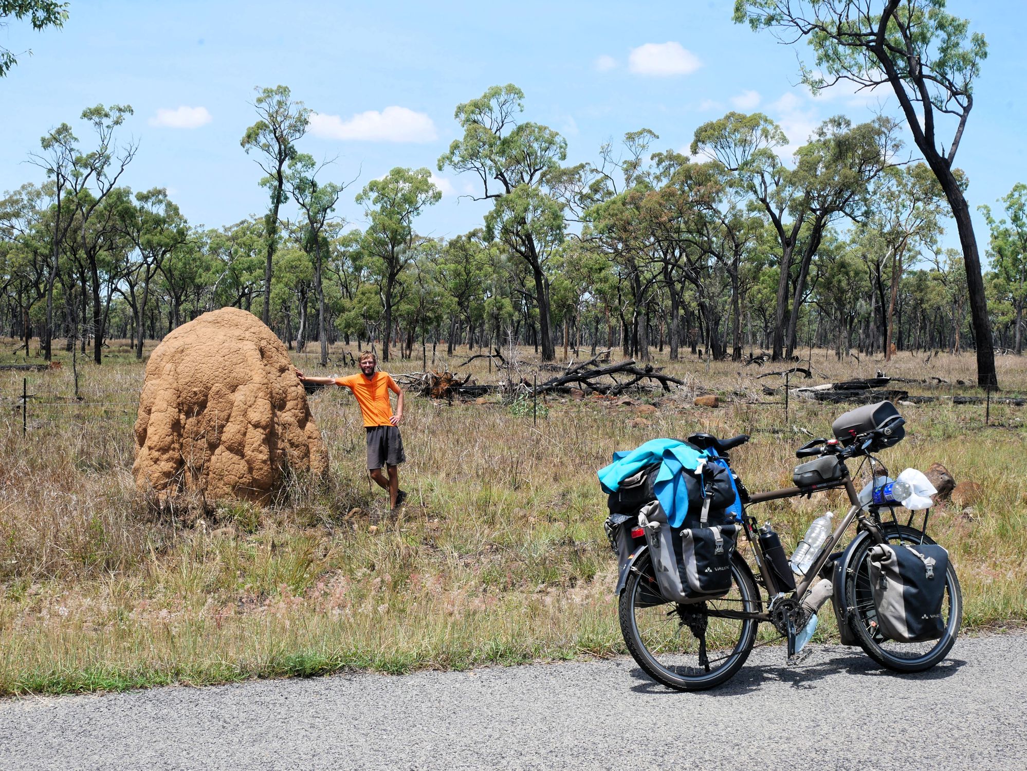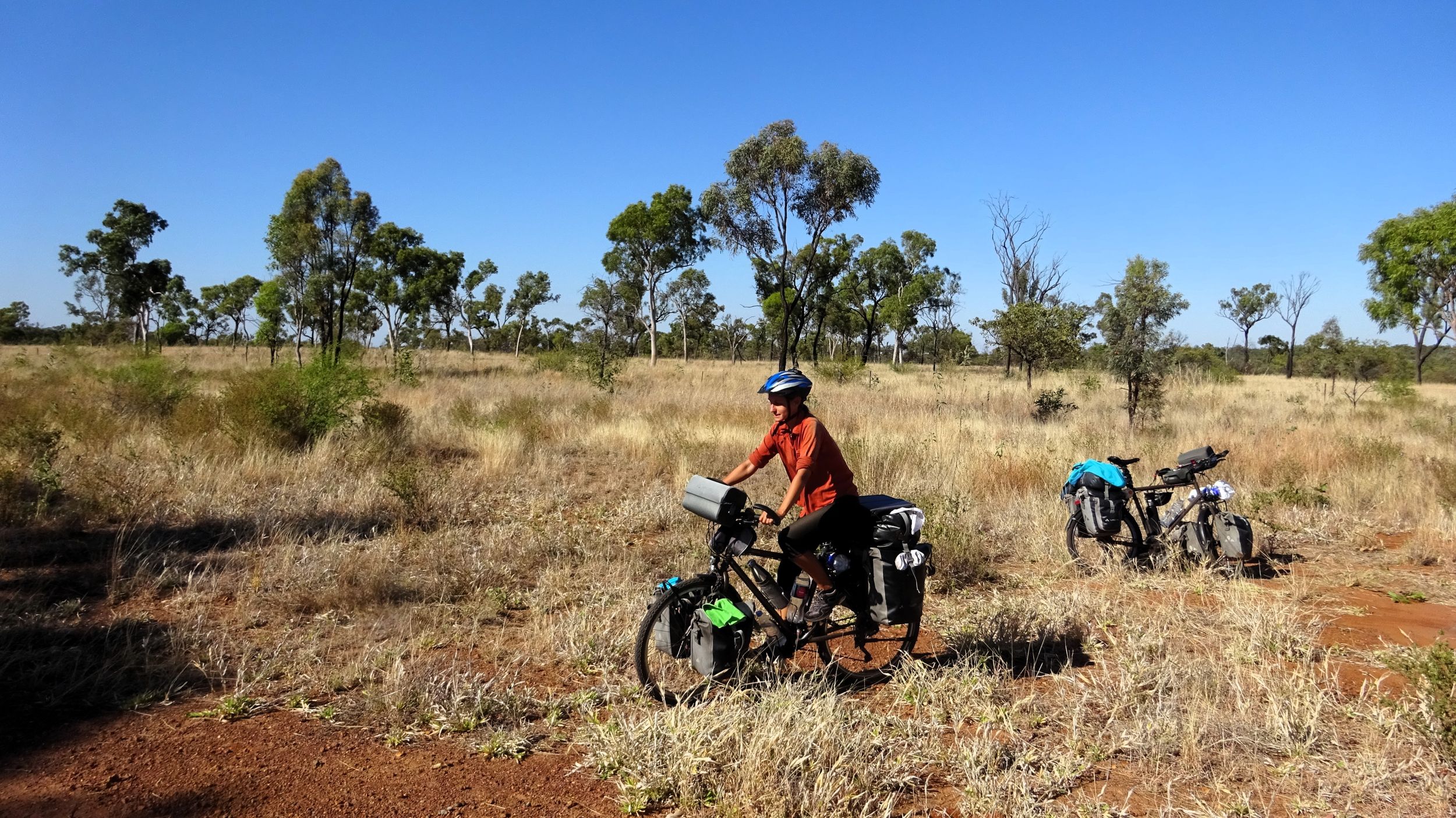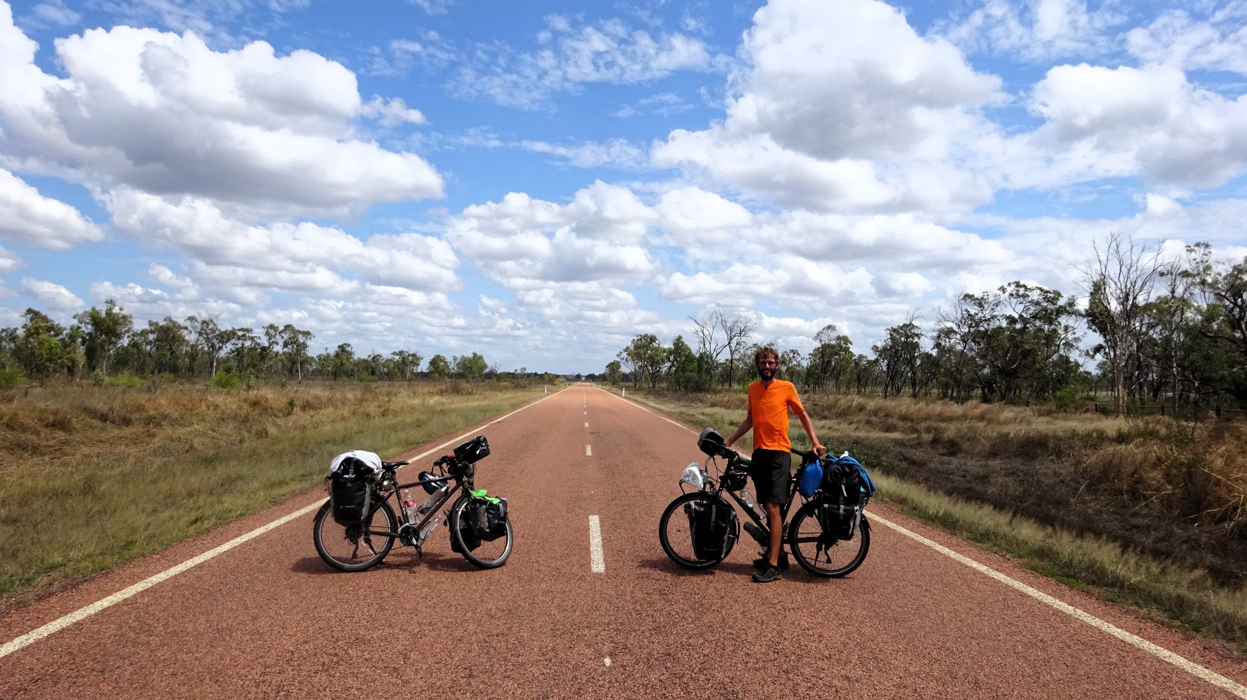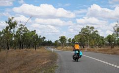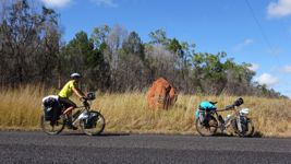 After our campervan relocation from Darwin to Cairns (see episode 88), we now set off from Cairns on our bikes heading south. We don’t want to follow the rather busy coast, but rather spend a few hundred kilometers in the sparsely populated hinterland. To do this, we first have to climb the Atherton Tablelands and cycle through tropical rainforest for the last time on this tour. We experience one of the most beautiful encounters with people on this tour, but also the probably most unpleasant one. Then it’s off to the outback. 430 km lie between the two neighboring settlements of Mt. Garnet and Hughenden, and in this episode, we report on the challenges, but also the elation, of our first stretch of Australian bushland.
