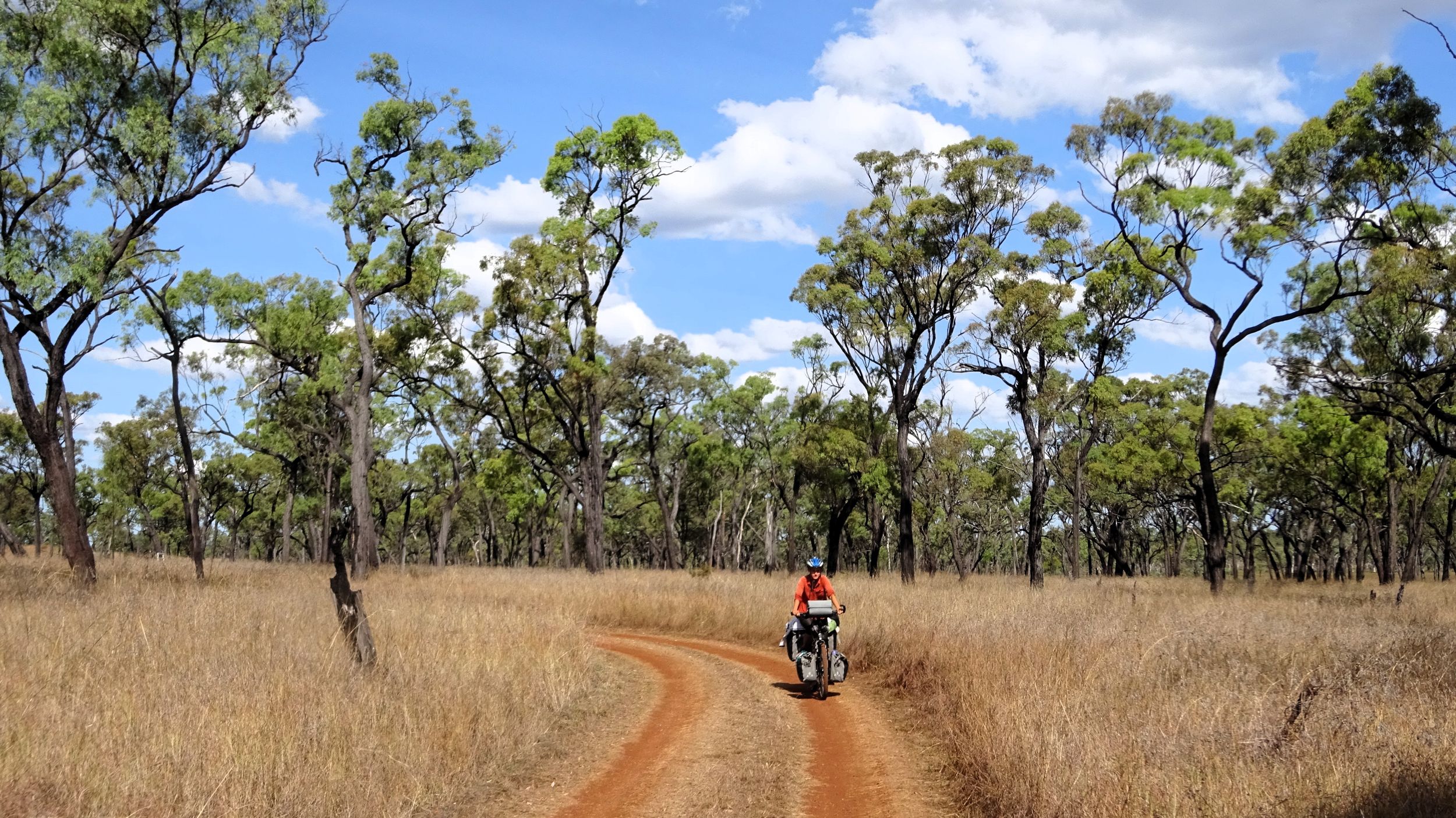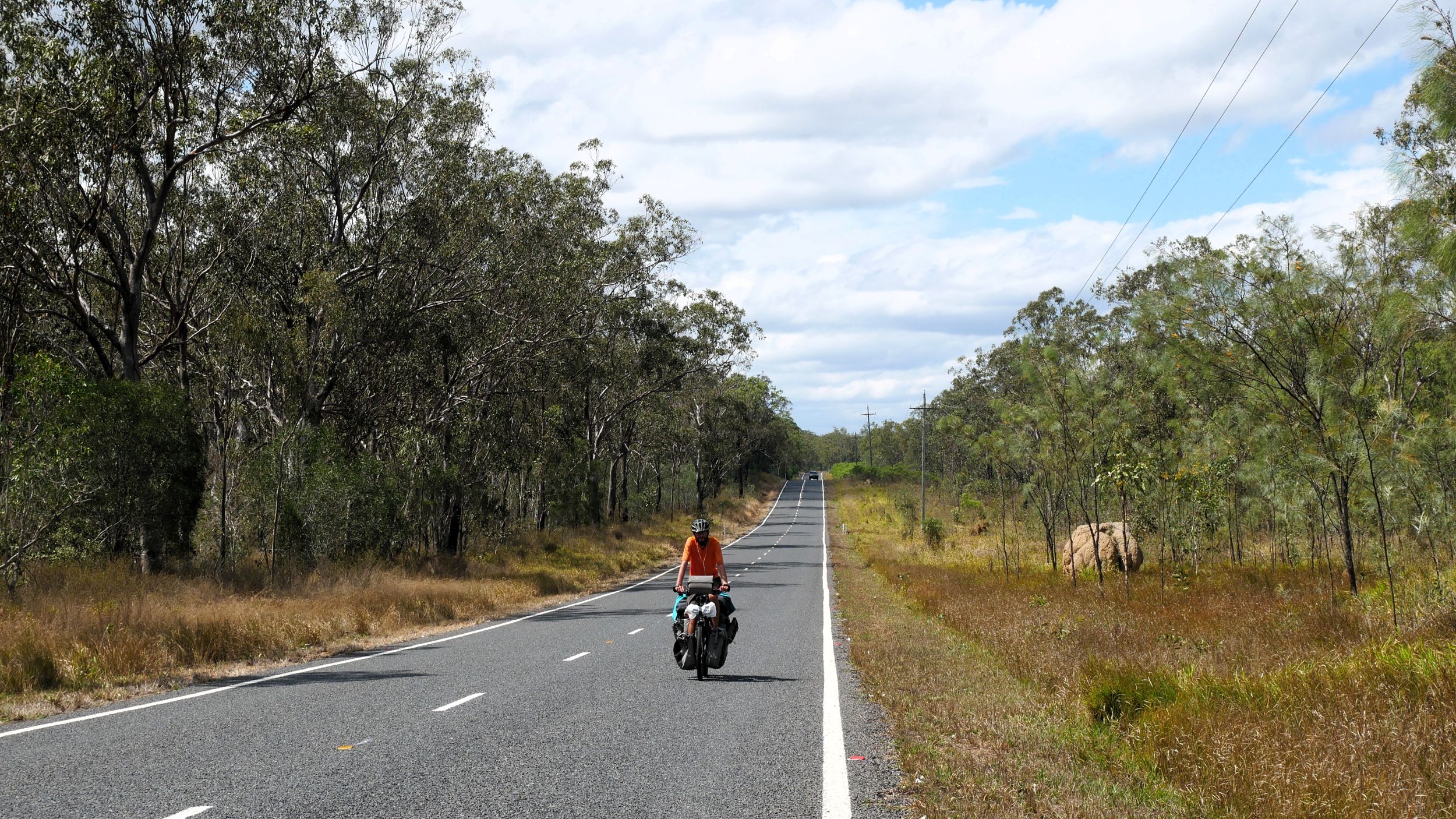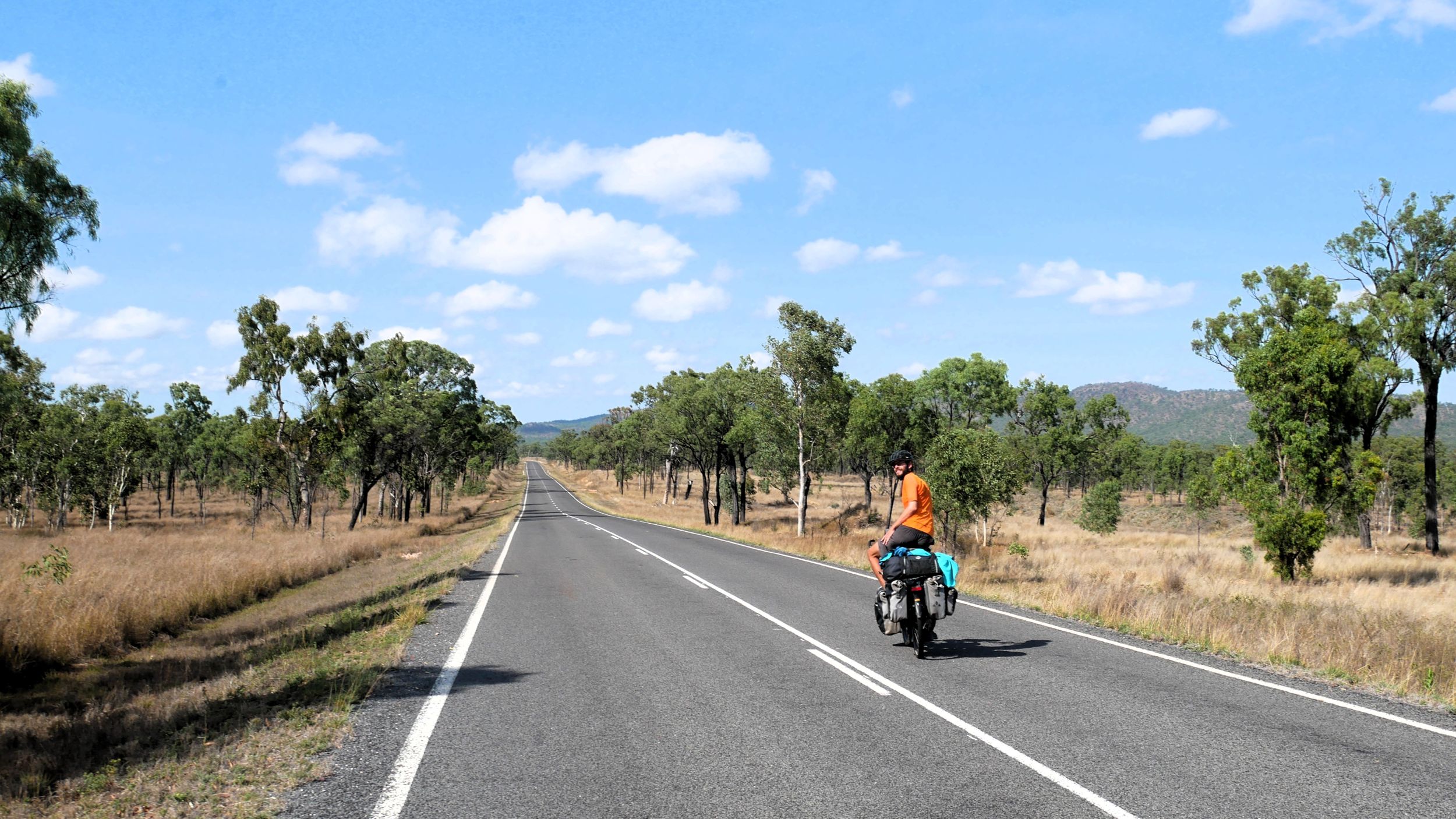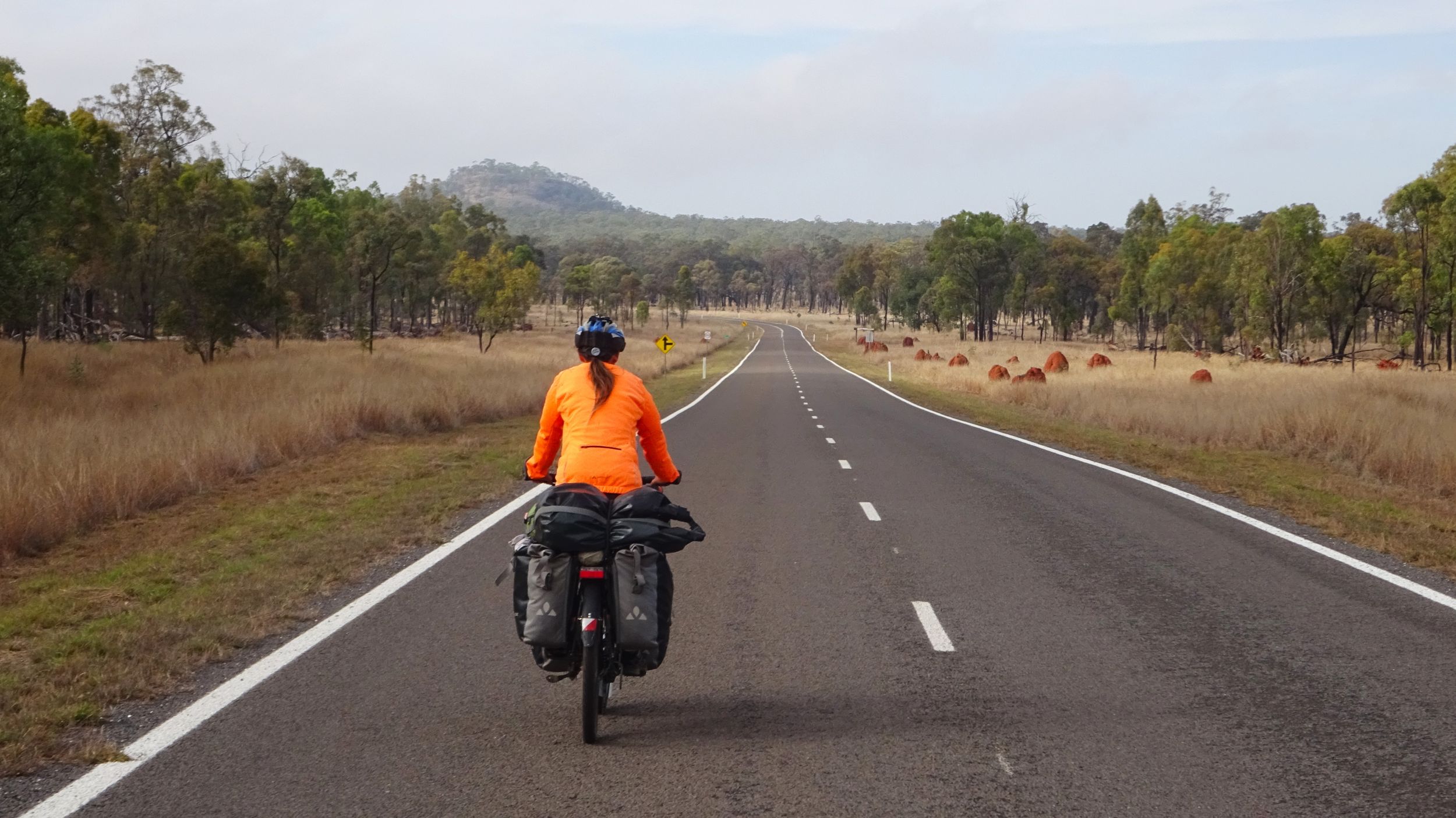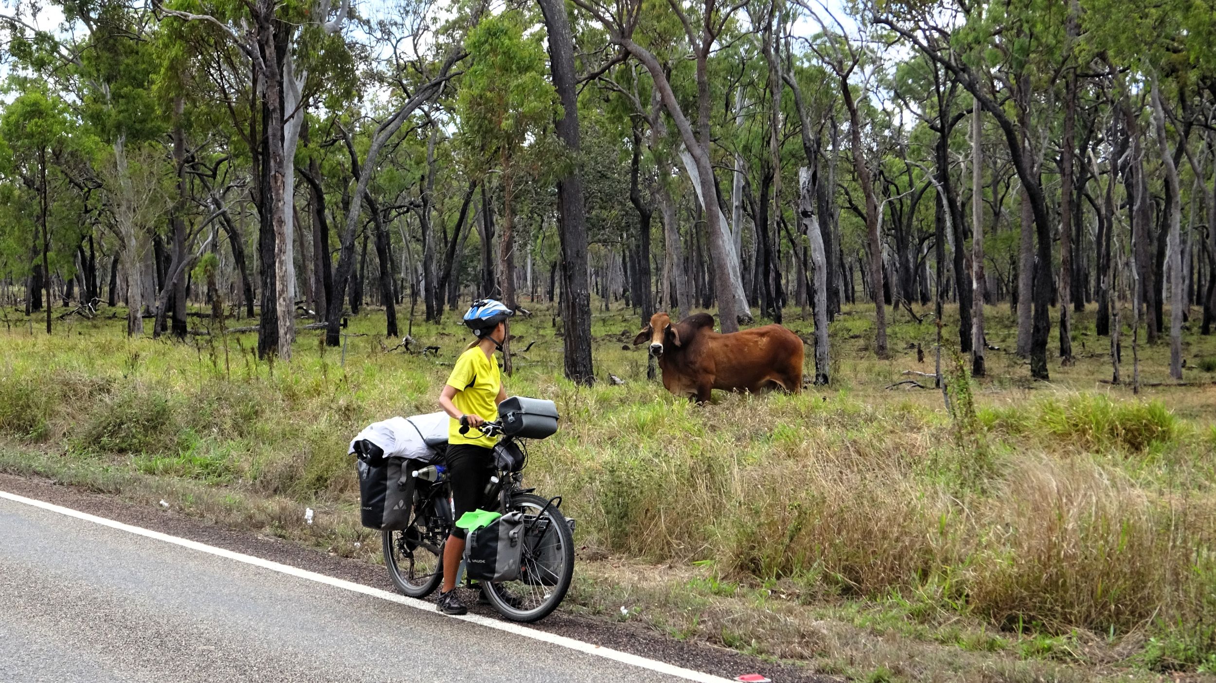 After our campervan relocation from Darwin to Cairns (see episode 88), we now set off from Cairns on our bikes heading south. We don’t want to follow the rather busy coast, but rather spend a few hundred kilometers in the sparsely populated hinterland. To do this, we first have to climb the Atherton Tablelands and cycle through tropical rainforest for the last time on this tour. We experience one of the most beautiful encounters with people on this tour, but also the probably most unpleasant one. Then it’s off to the outback. 430 km lie between the two neighboring settlements of Mt. Garnet and Hughenden, and in this episode, we report on the challenges, but also the elation, of our first stretch of Australian bushland.