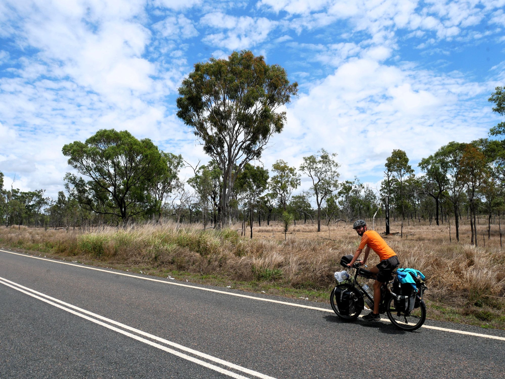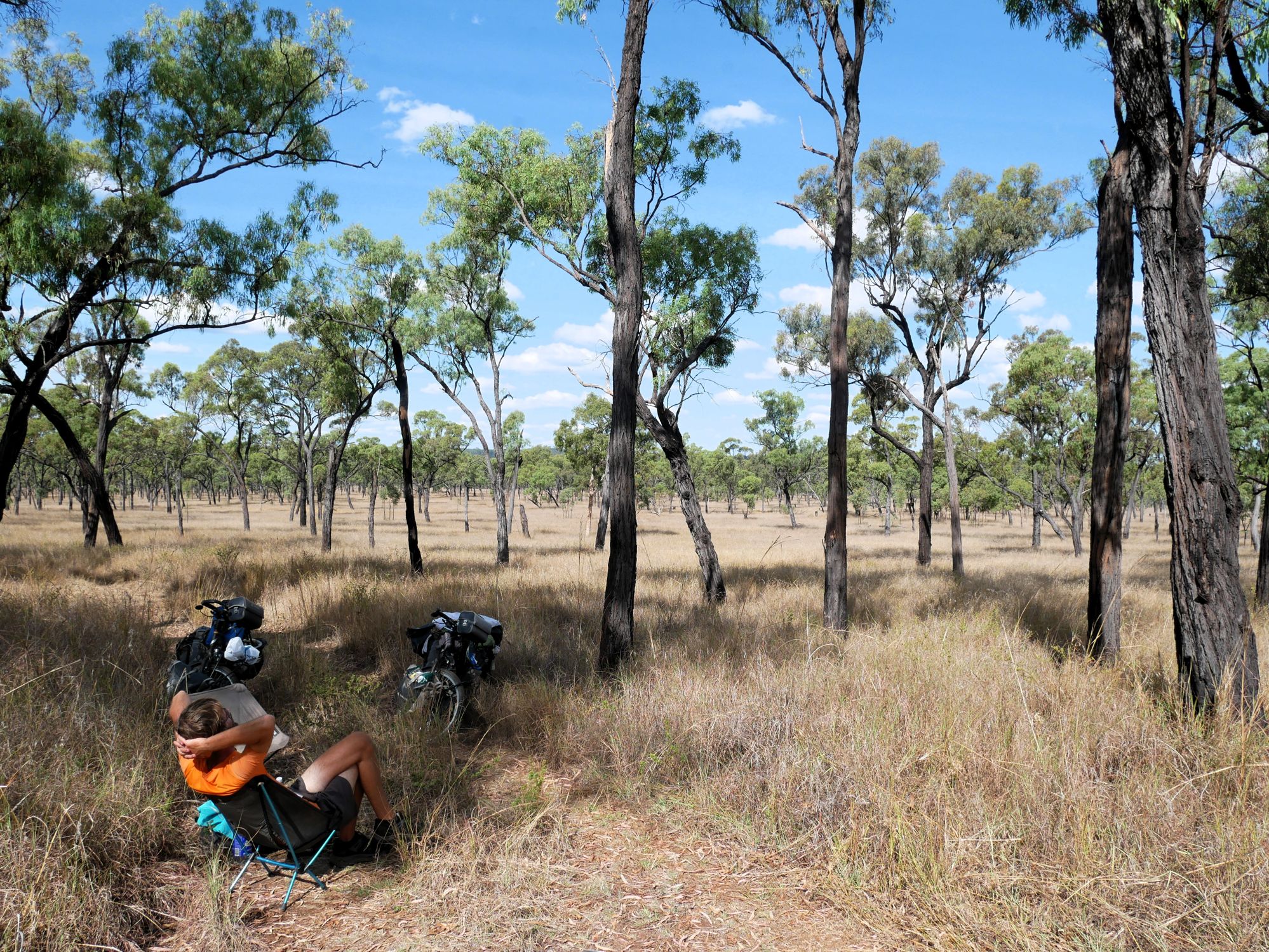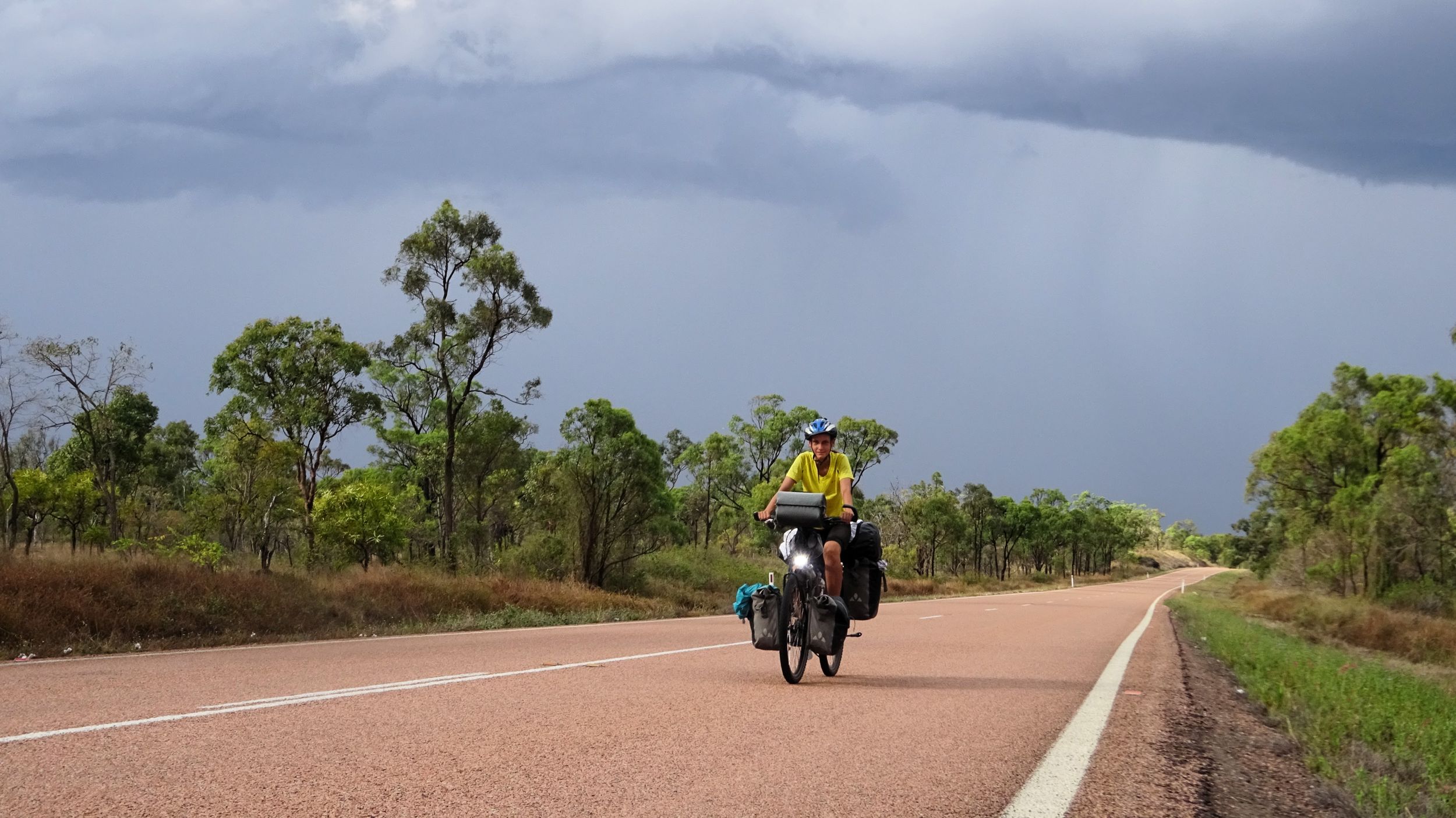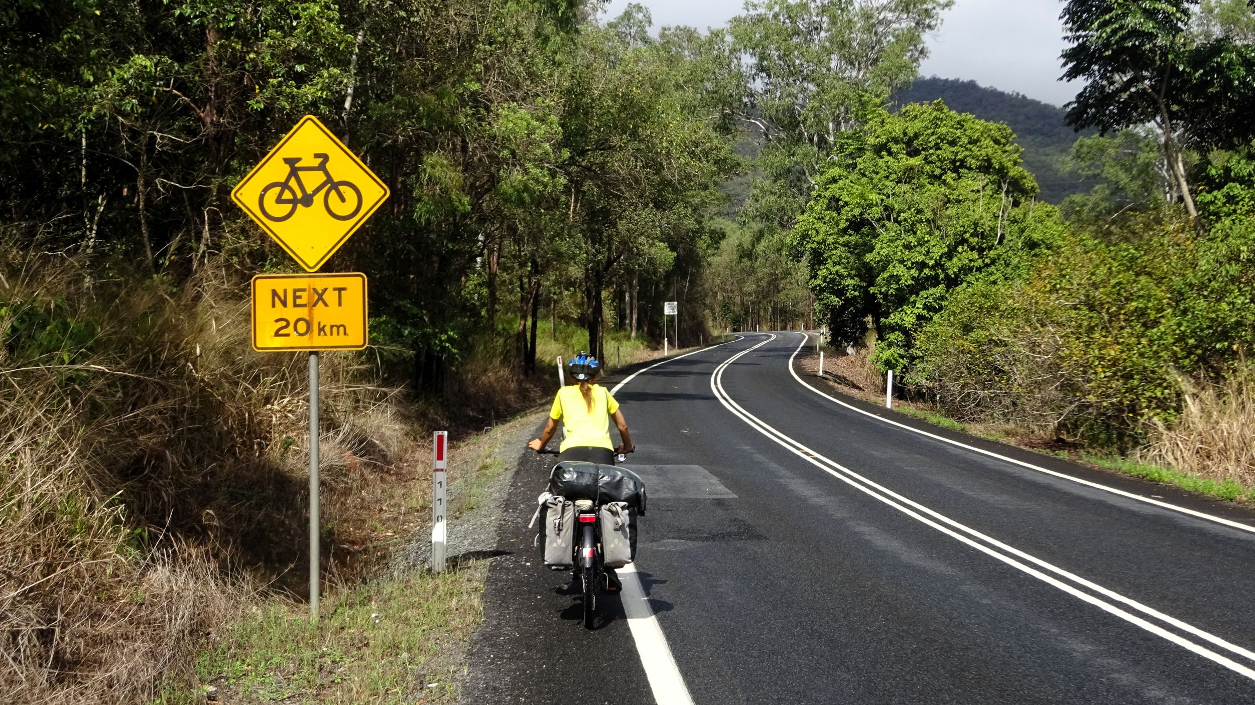 After our campervan relocation from Darwin to Cairns (see episode 88), we now set off from Cairns on our bikes heading south. We don’t want to follow the rather busy coast, but rather spend a few hundred kilometers in the sparsely populated hinterland. To do this, we first have to climb the Atherton Tablelands and cycle through tropical rainforest for the last time on this tour. We experience one of the most beautiful encounters with people on this tour, but also the probably most unpleasant one. Then it’s off to the outback. 430 km lie between the two neighboring settlements of Mt. Garnet and Hughenden, and in this episode, we report on the challenges, but also the elation, of our first stretch of Australian bushland.