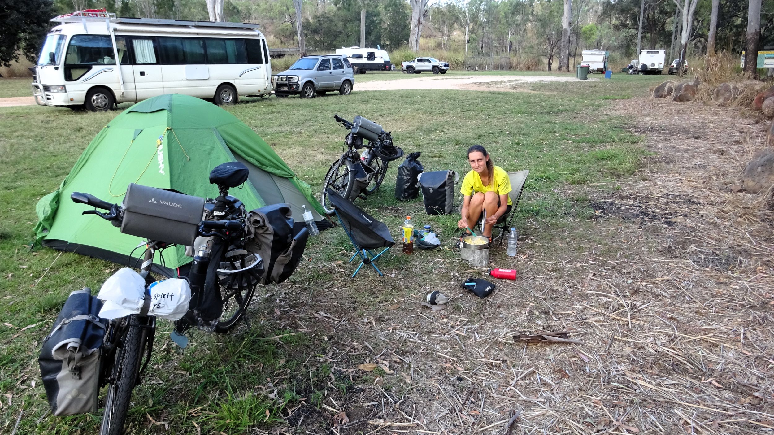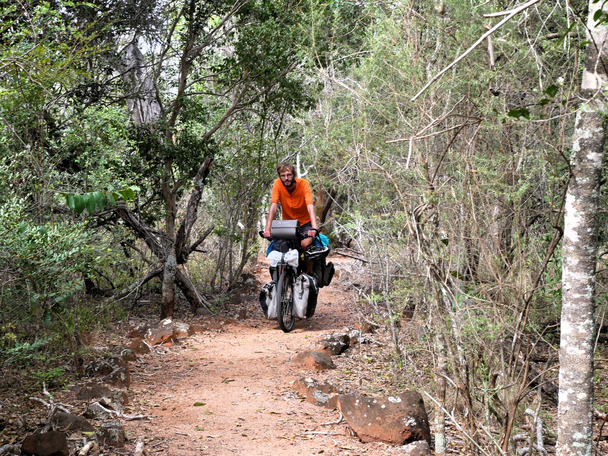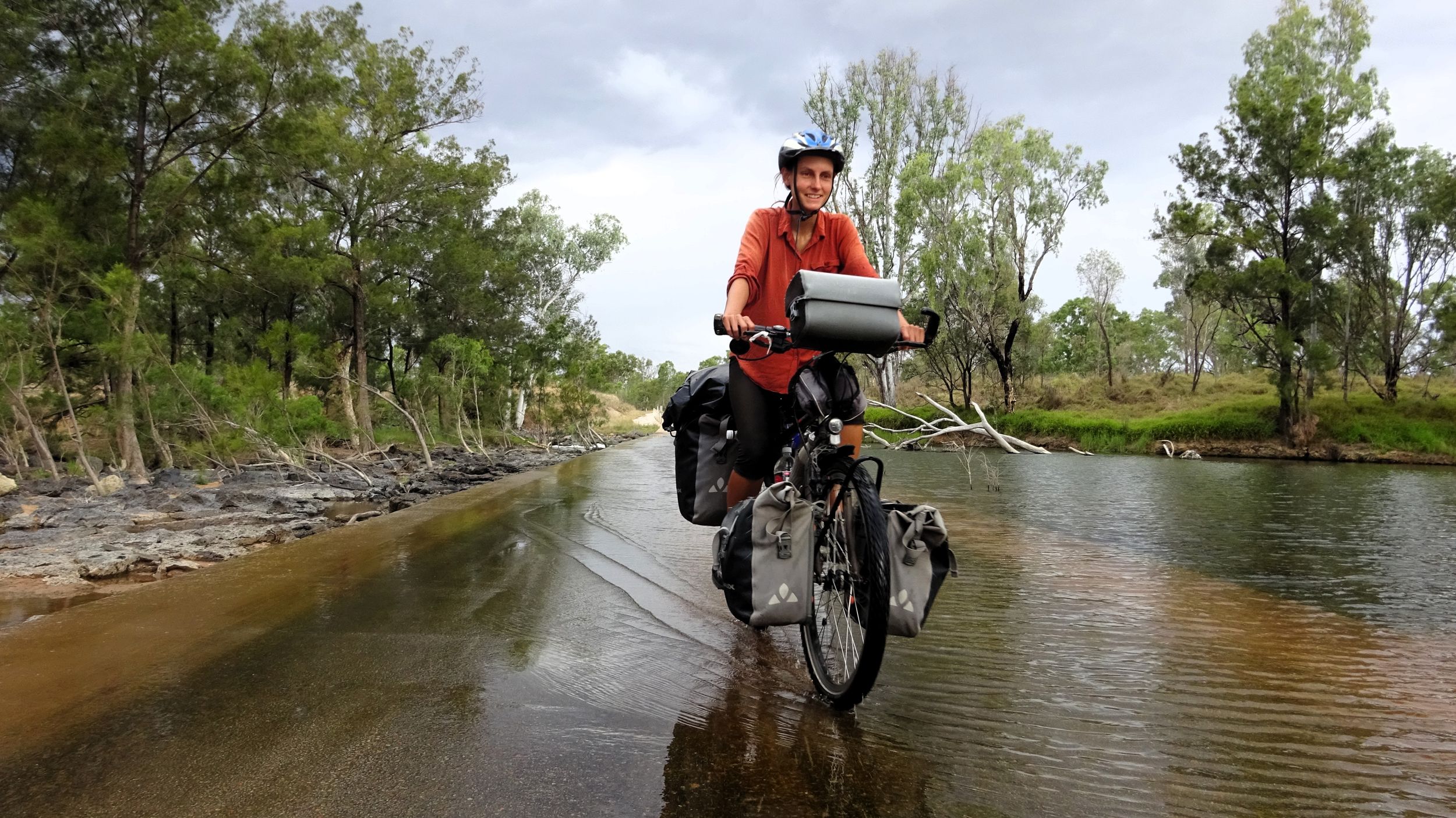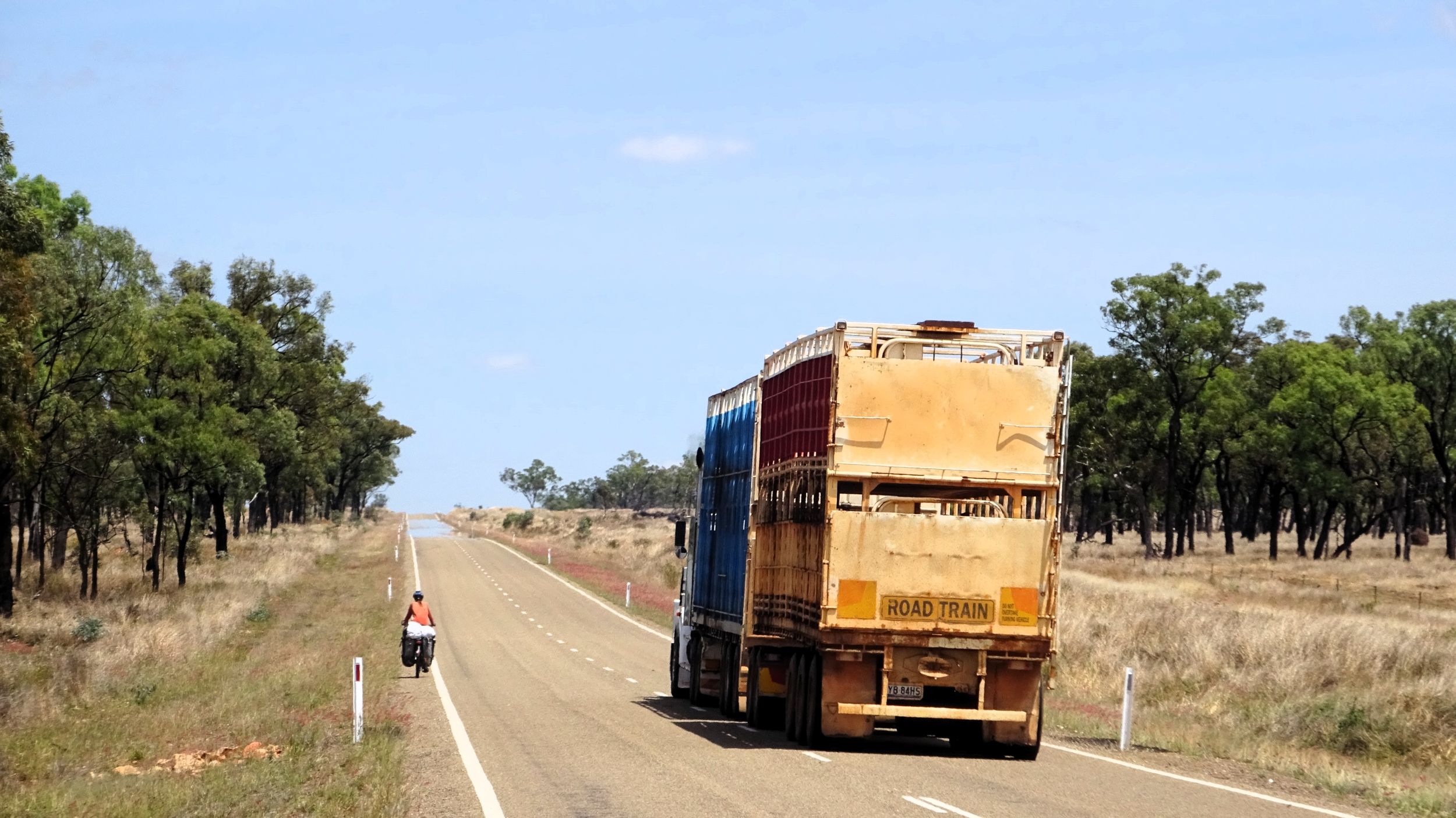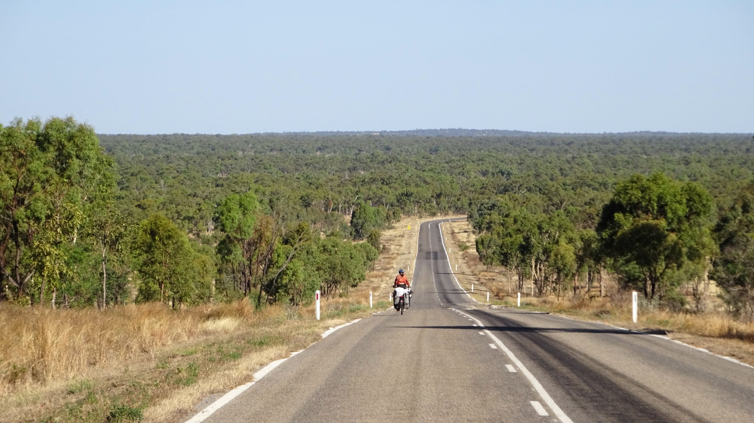 After our campervan relocation from Darwin to Cairns (see episode 88), we now set off from Cairns on our bikes heading south. We don’t want to follow the rather busy coast, but rather spend a few hundred kilometers in the sparsely populated hinterland. To do this, we first have to climb the Atherton Tablelands and cycle through tropical rainforest for the last time on this tour. We experience one of the most beautiful encounters with people on this tour, but also the probably most unpleasant one. Then it’s off to the outback. 430 km lie between the two neighboring settlements of Mt. Garnet and Hughenden, and in this episode, we report on the challenges, but also the elation, of our first stretch of Australian bushland.