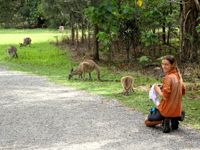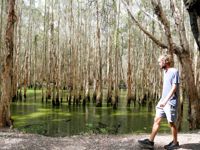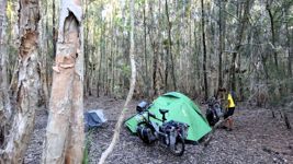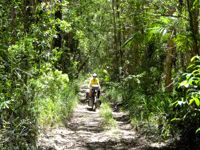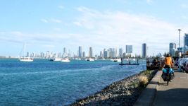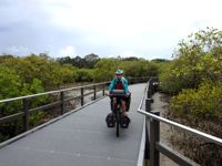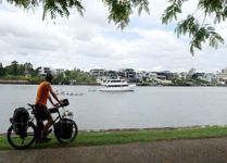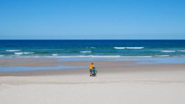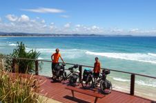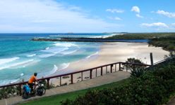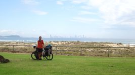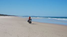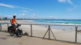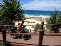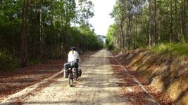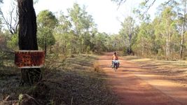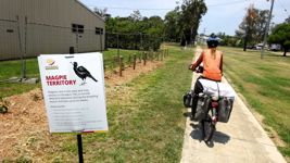 After the Outback we return to the vicinity of the east coast. We follow various more and also less family-friendly rail trails, and thanks to several fantastic Warmshowers hosts in the Brisbane area, we can finally sleep in a bed again after 40 consecutive nights in a tent, while also having a chance to talk a little more deeply with Australians about their country. We swim in the ocean for the first time in Australia and ride for miles (at low tide) along a stunning beach. We also experience what appear to be, and are actually, attacks from various birds and discuss what is so special about the marsupial fauna.
