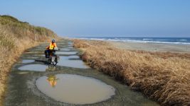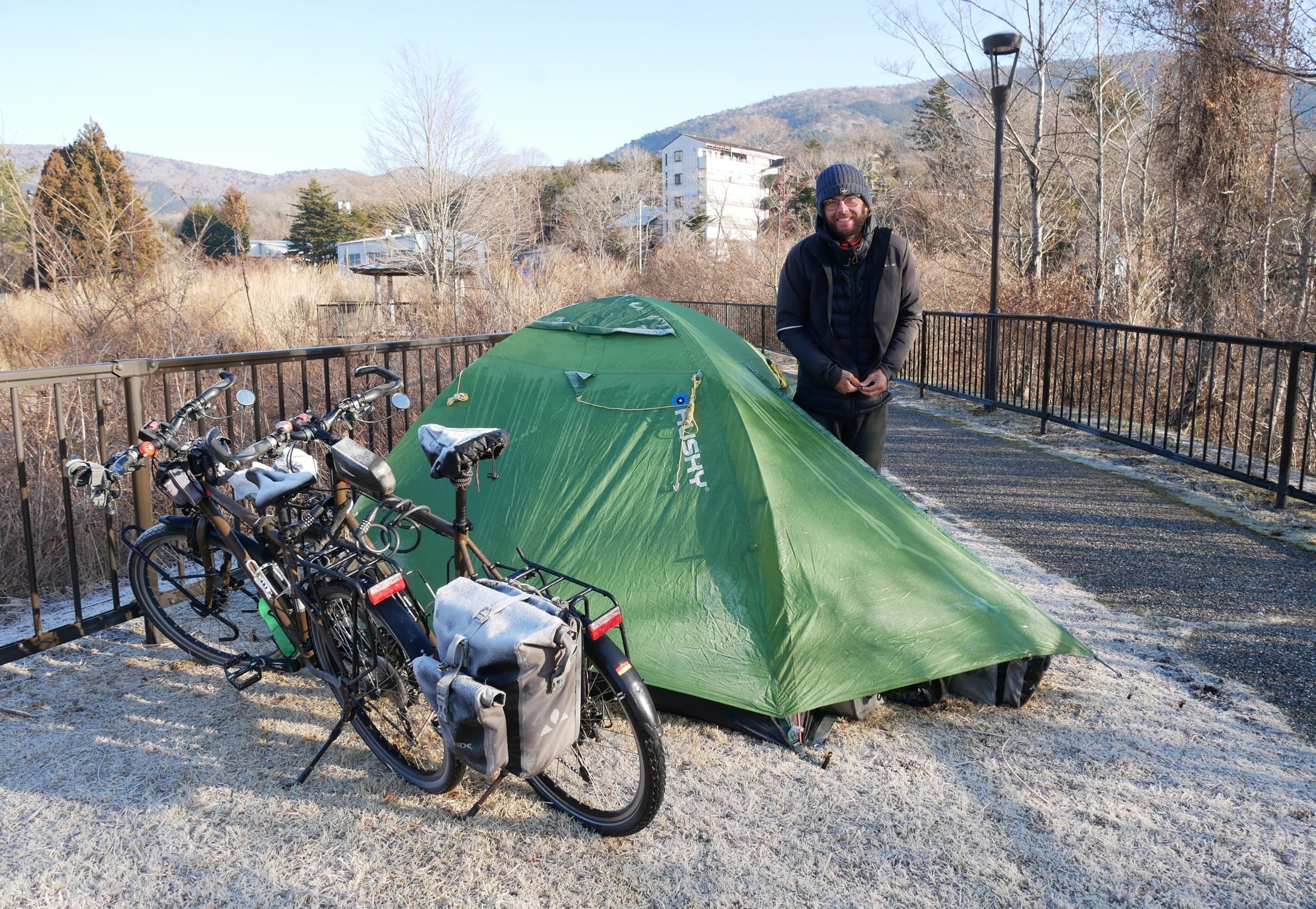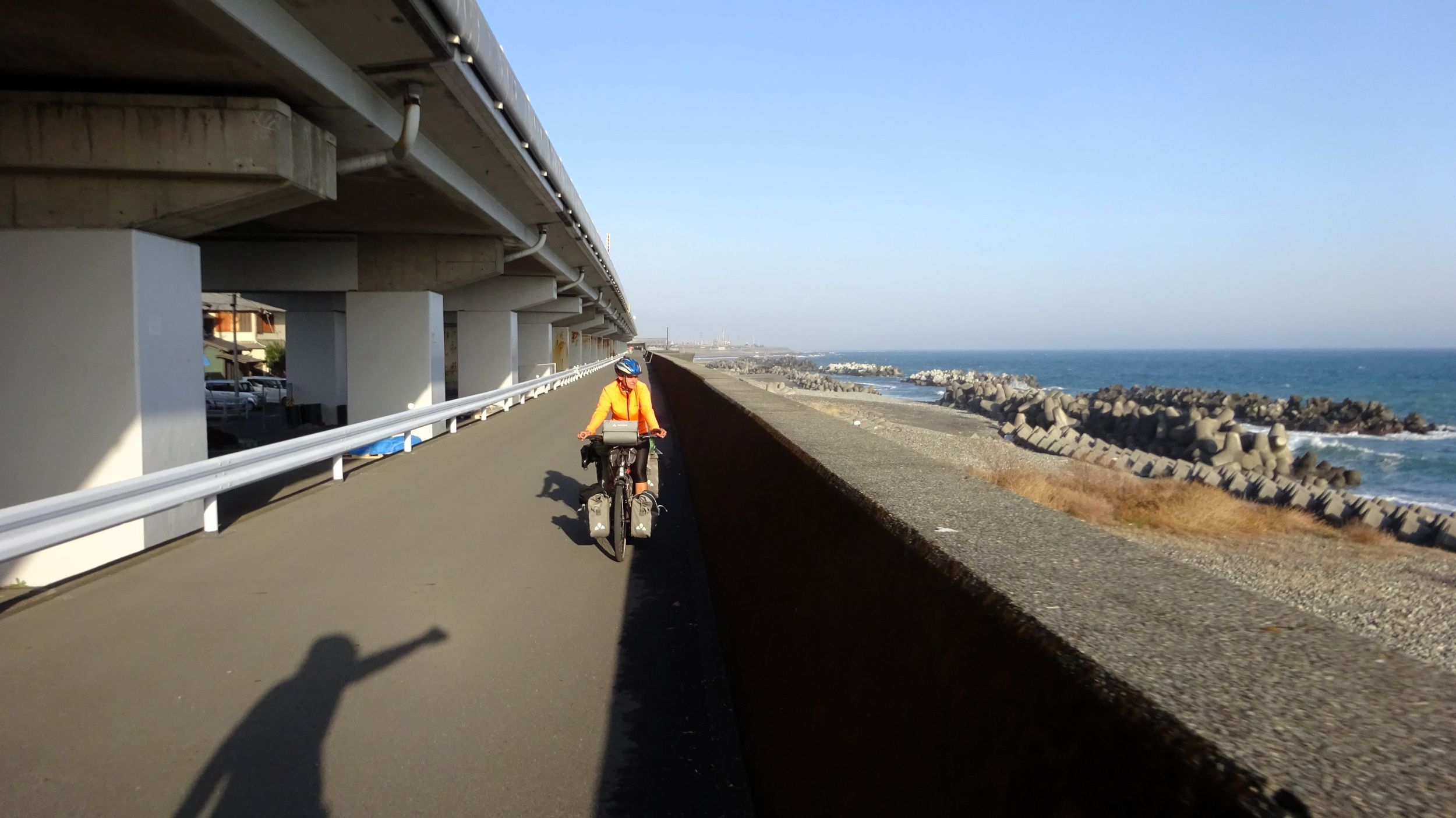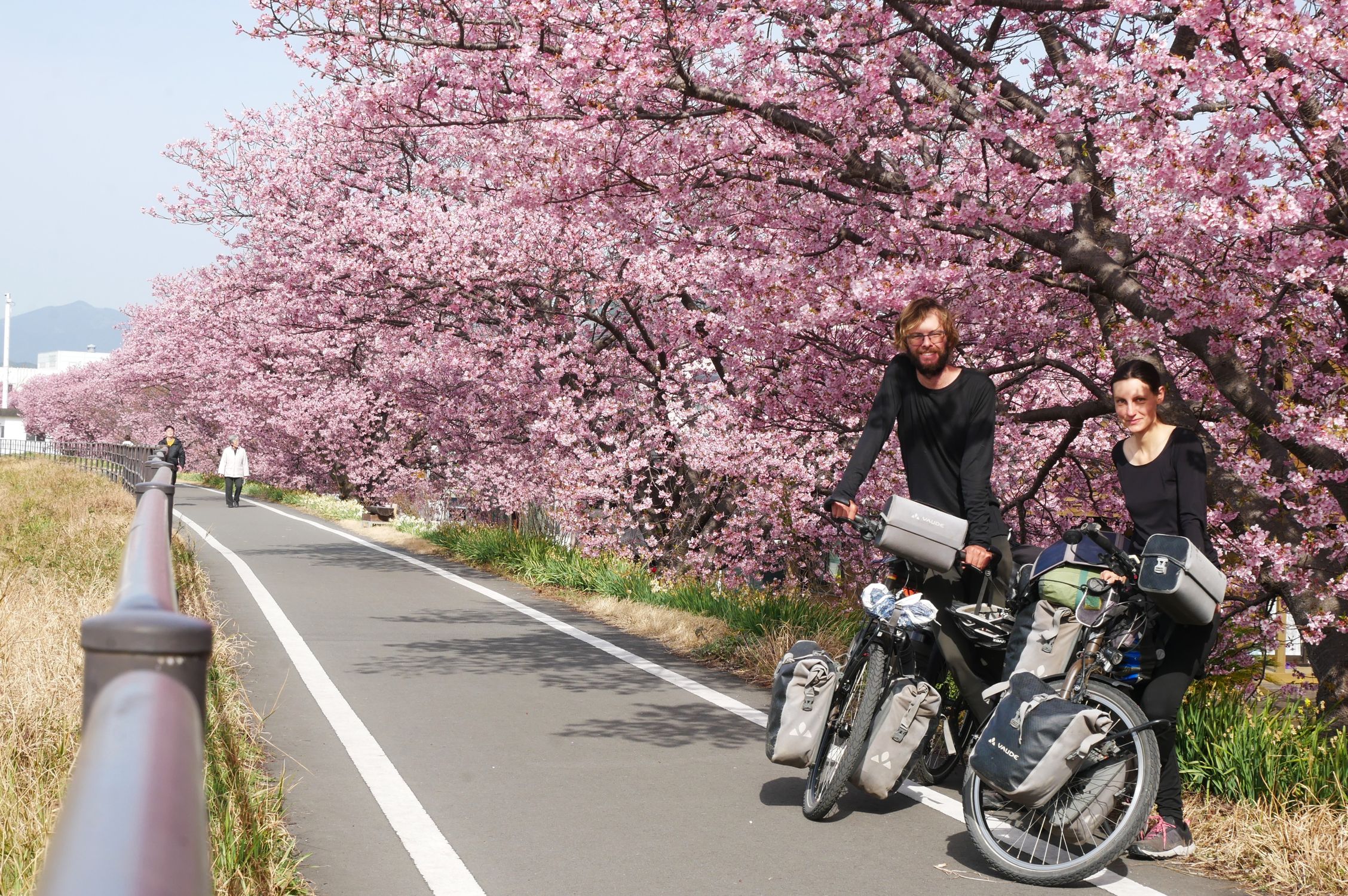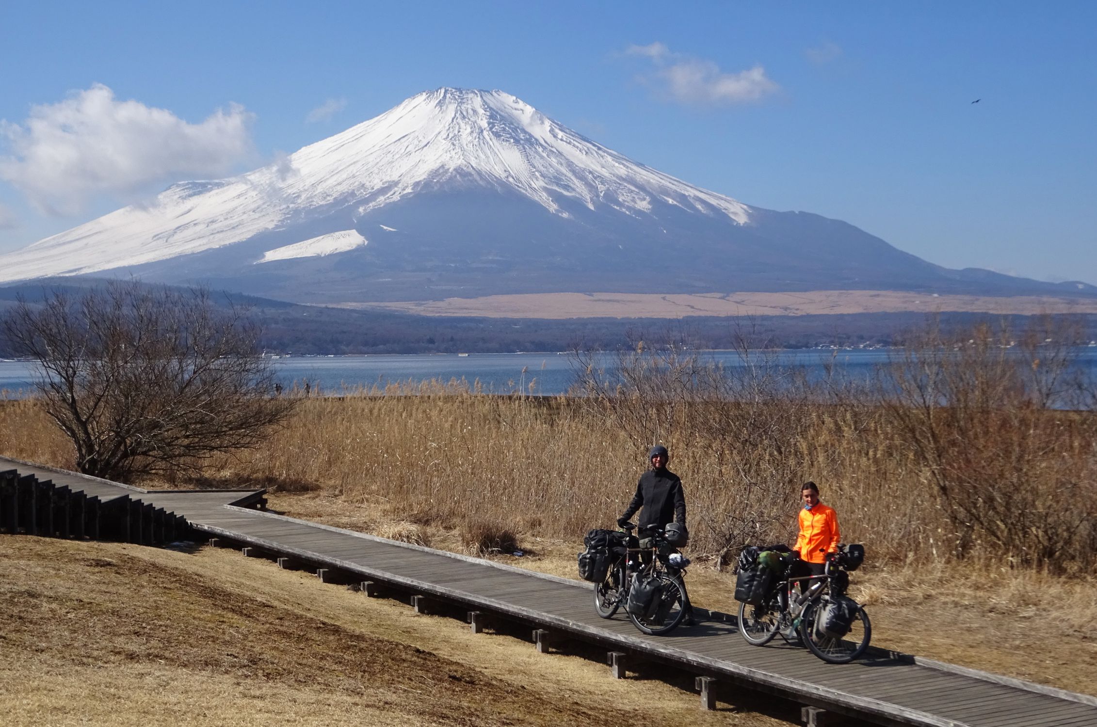We land in Tokyo-Narita at 6 °C and rain, but after riding a kilometer to the hotel sponsored by Air New Zealand, we have what’s perhaps the best start to a new country we’ve ever had. Not only because of the hotel and the dinner and breakfast buffet, but also because of the shining sun on the next morning! A cold, fresh wind on our faces, but blue skies and warm rays of sunshine on our backs is a long-forgotten experience for us, almost bringing tears of joy to our eyes. After four days in Tokyo, we set off for what is perhaps the most beautiful mountain in the world and admire its conical shape with its snow-covered peak from all sides. We then follow the Pacific coast, where we can ride on bike paths for about half of the route, which are in stark contrast to the bike paths in New Zealand. If you like brutalism, Japan has the matching bike paths!