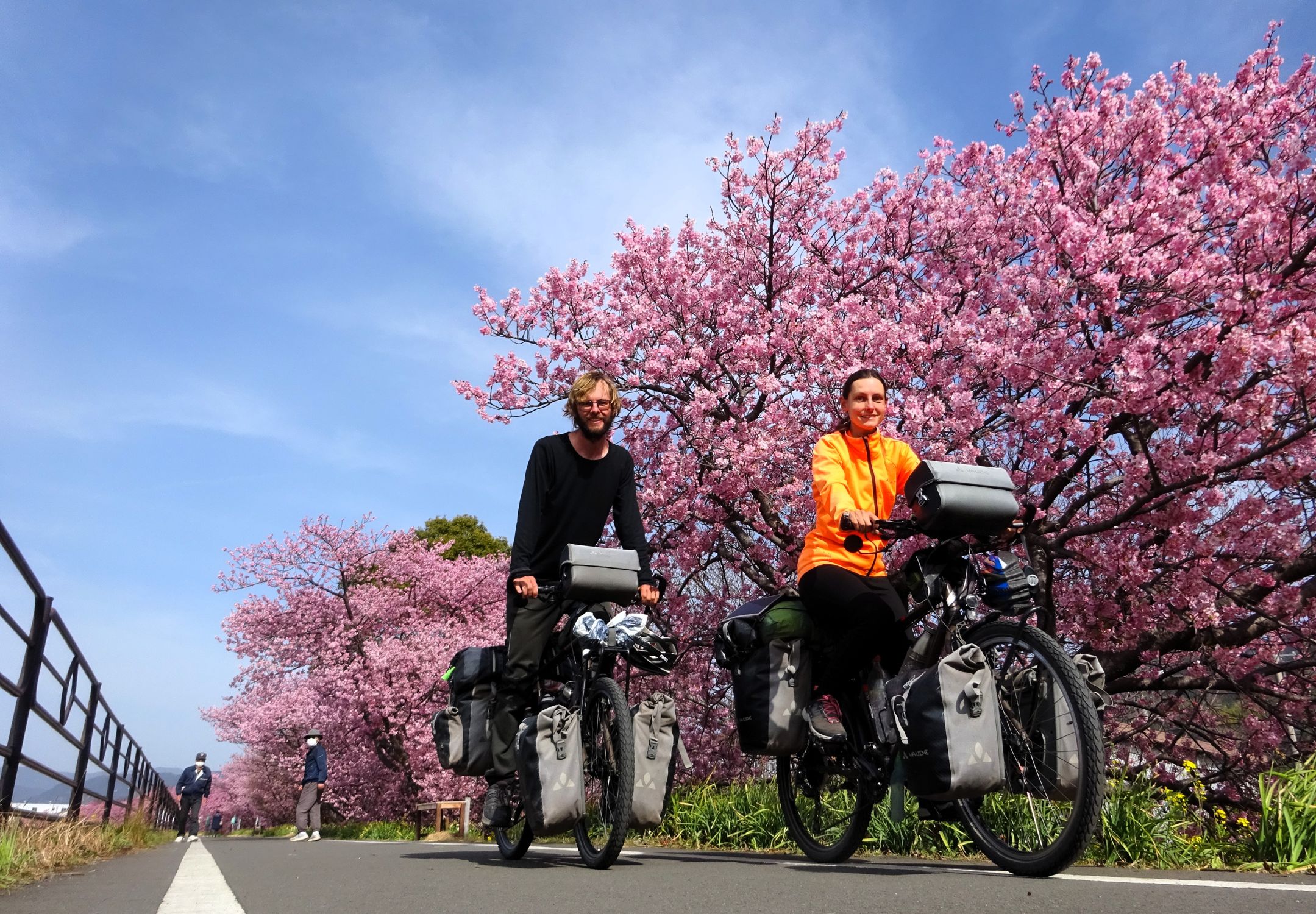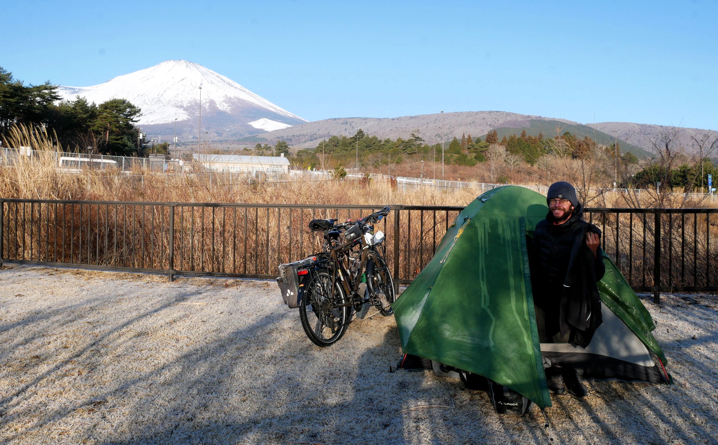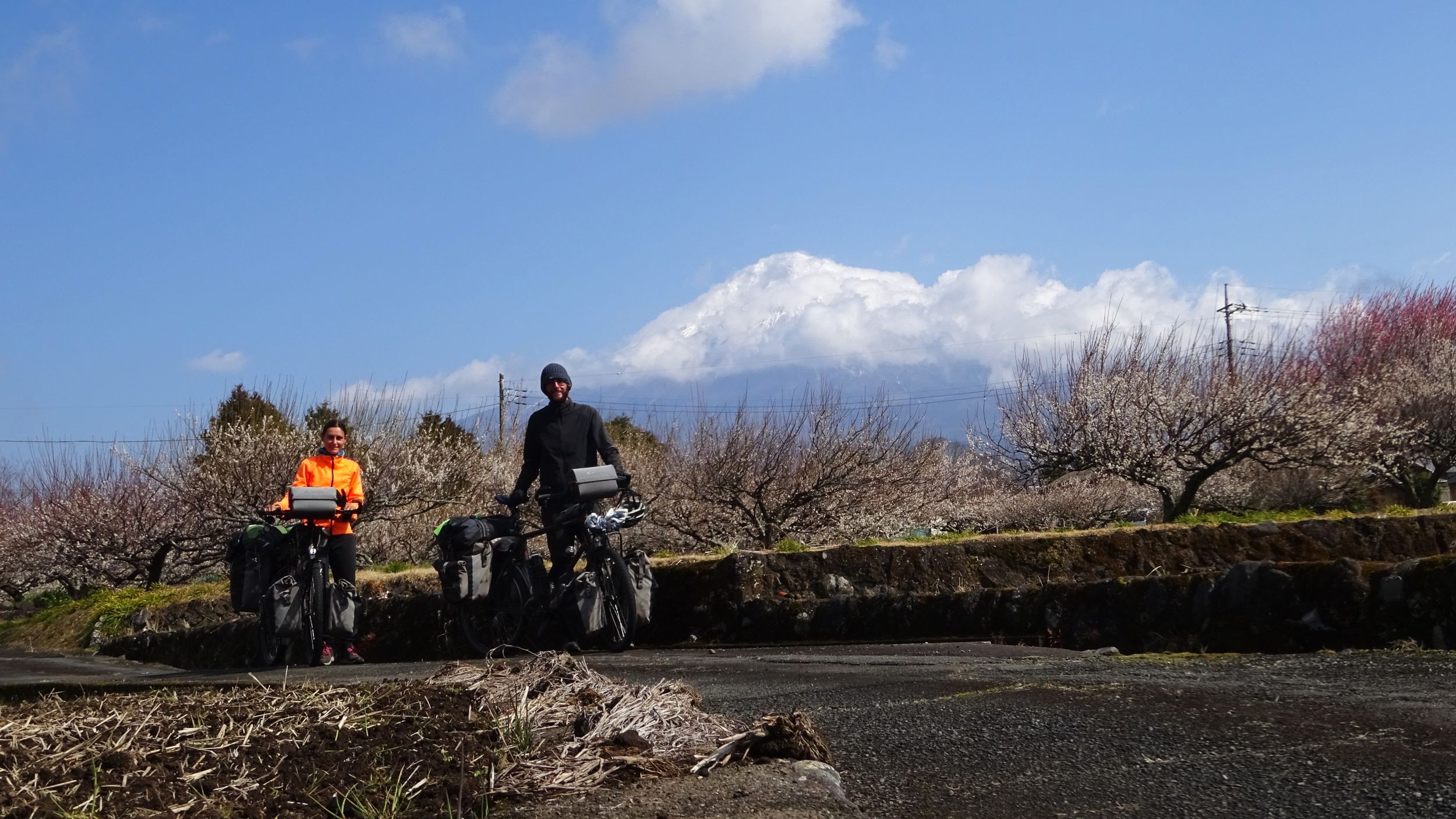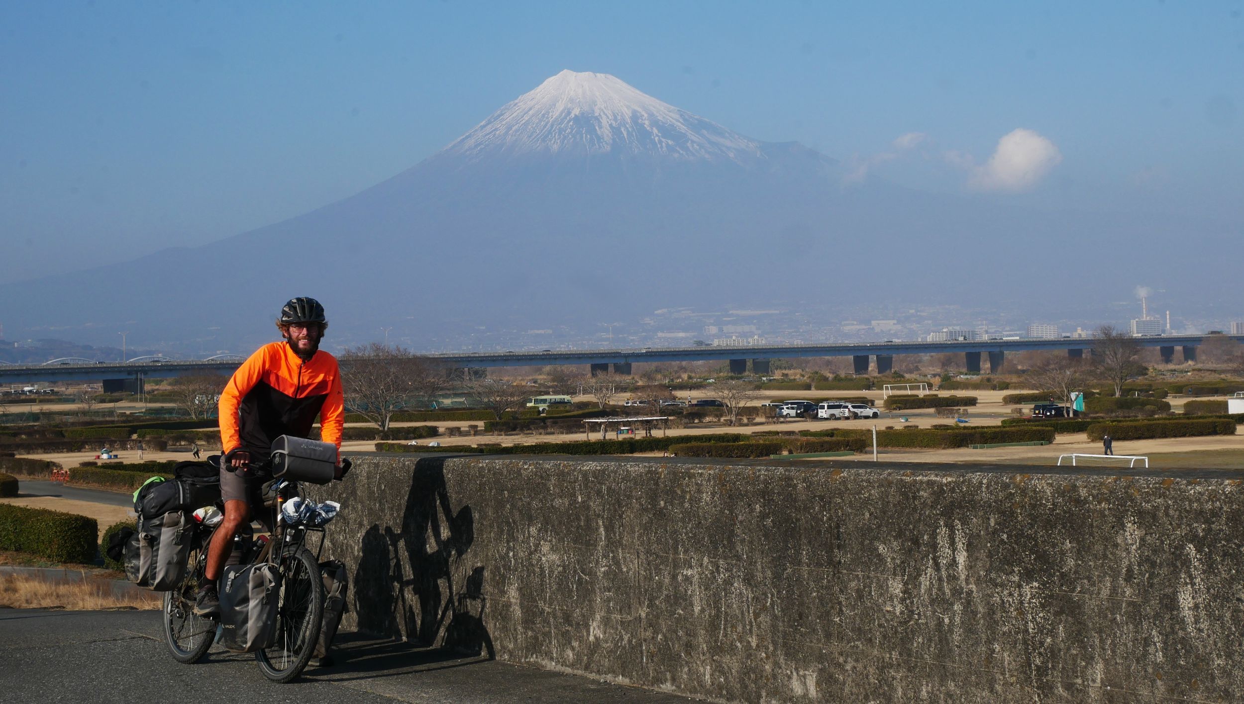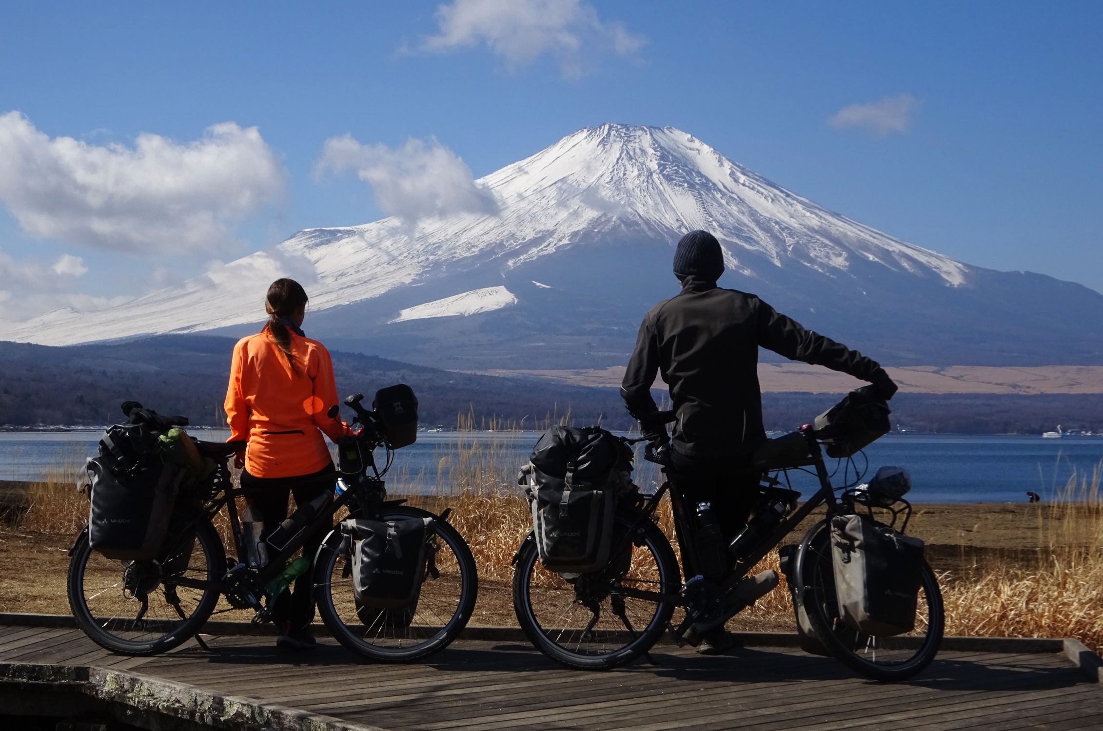 We land in Tokyo-Narita at 6 °C and rain, but after riding a kilometer to the hotel sponsored by Air New Zealand, we have what’s perhaps the best start to a new country we’ve ever had. Not only because of the hotel and the dinner and breakfast buffet, but also because of the shining sun on the next morning! A cold, fresh wind on our faces, but blue skies and warm rays of sunshine on our backs is a long-forgotten experience for us, almost bringing tears of joy to our eyes. After four days in Tokyo, we set off for what is perhaps the most beautiful mountain in the world and admire its conical shape with its snow-covered peak from all sides. We then follow the Pacific coast, where we can ride on bike paths for about half of the route, which are in stark contrast to the bike paths in New Zealand. If you like brutalism, Japan has the matching bike paths!